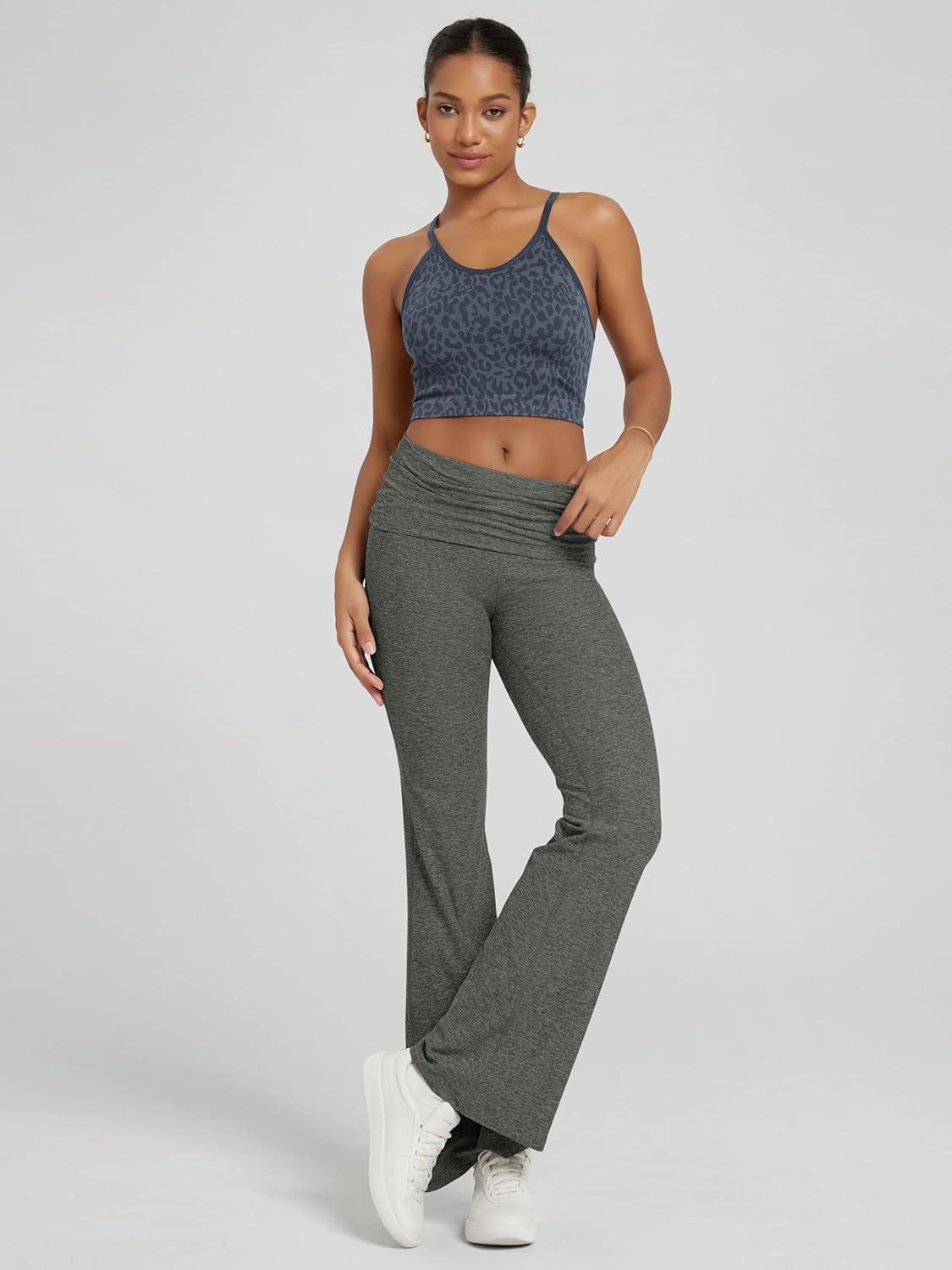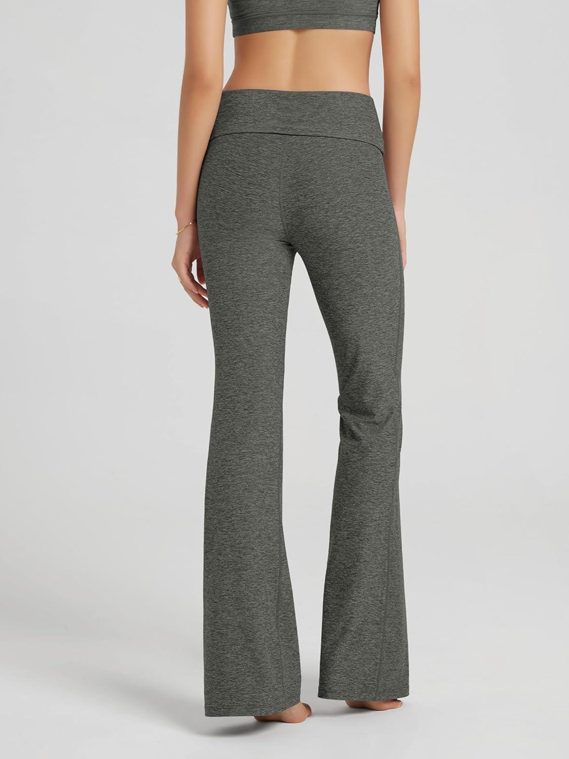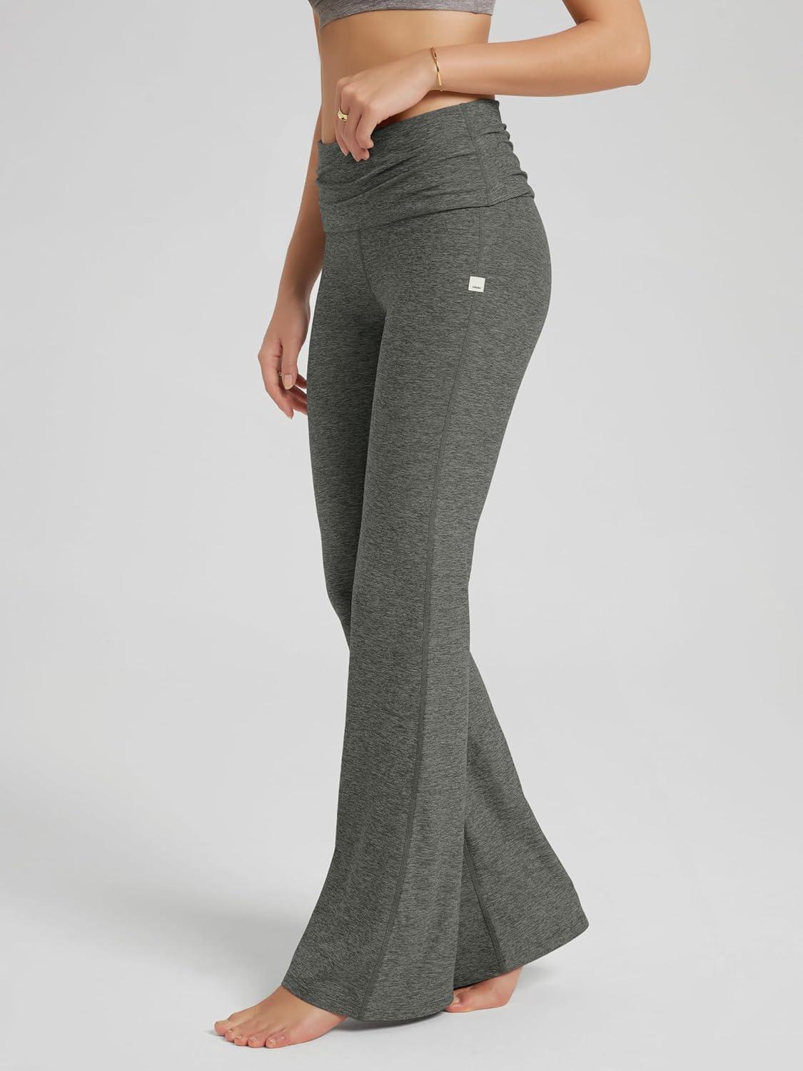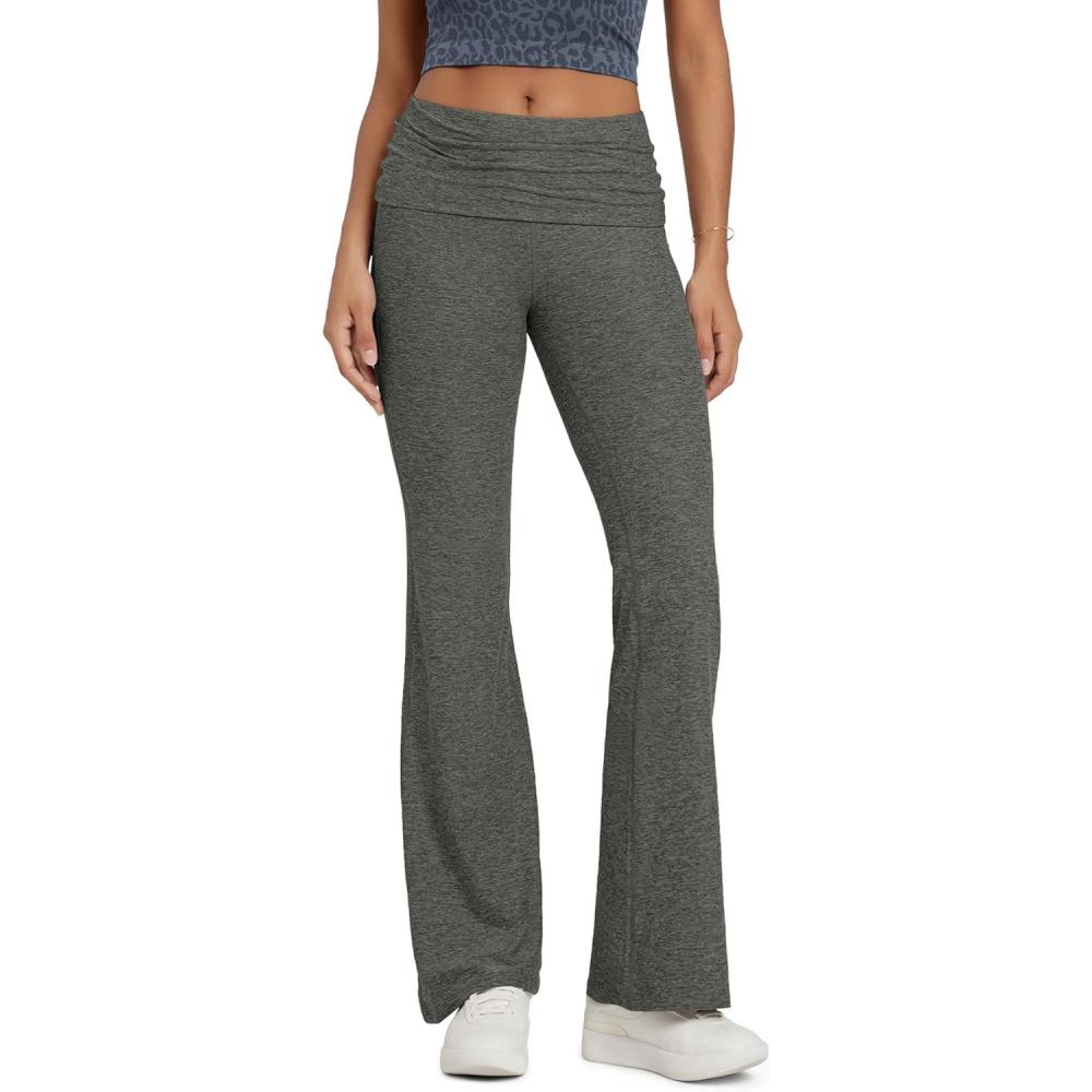 ODODOS Women’s Foldover Pants – Ultra Soft Stratum Tech Performance Mid Rise Casual Lounge Yoga Pants – 30″ Inseam(Smoke Heather)