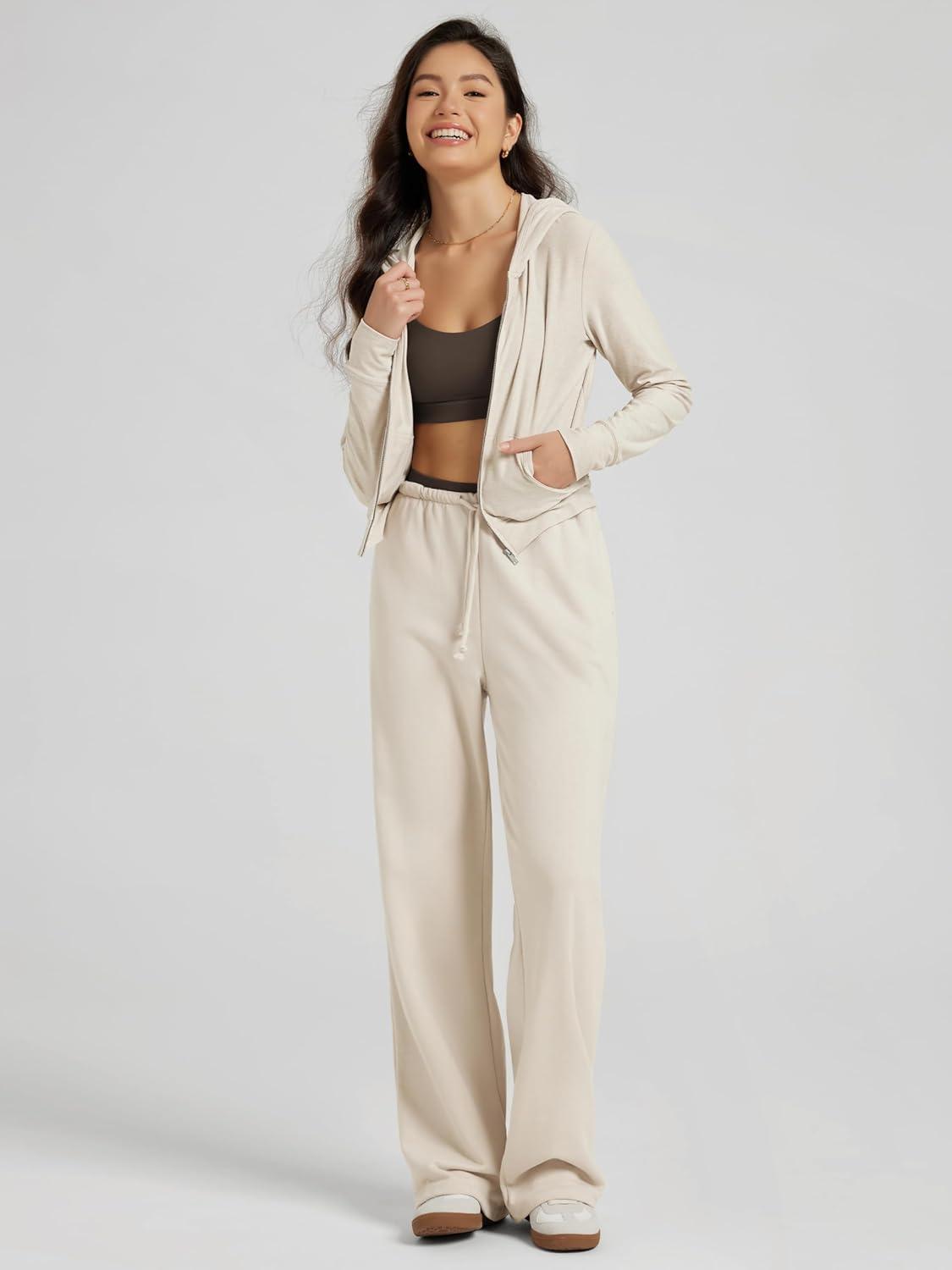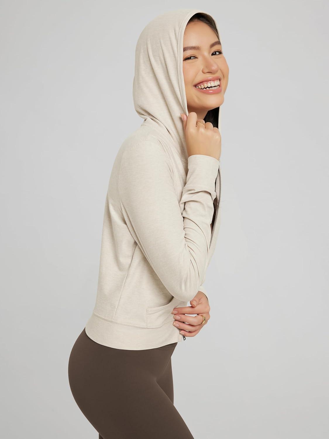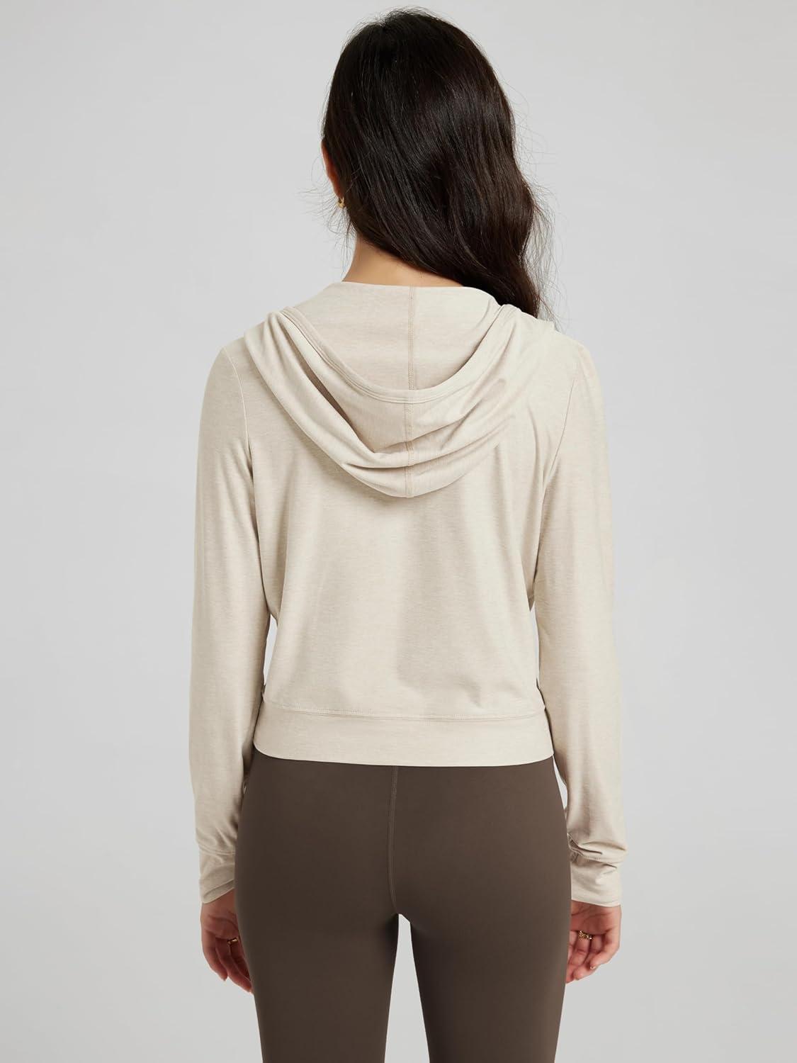 ODODOS Women’s Full-Zip Cropped Hoodie – Stratum Tech Ultra Soft UPF 50+ Hooded Jacket with Pockets(Milkweed Heather)