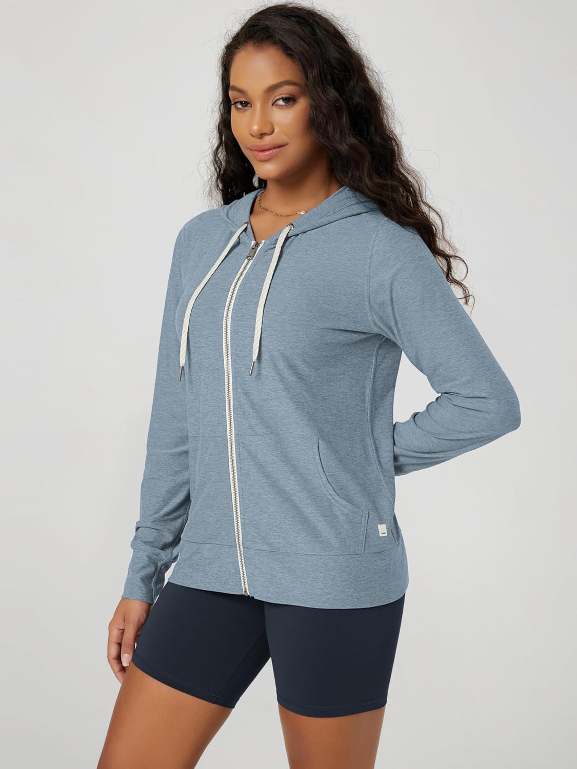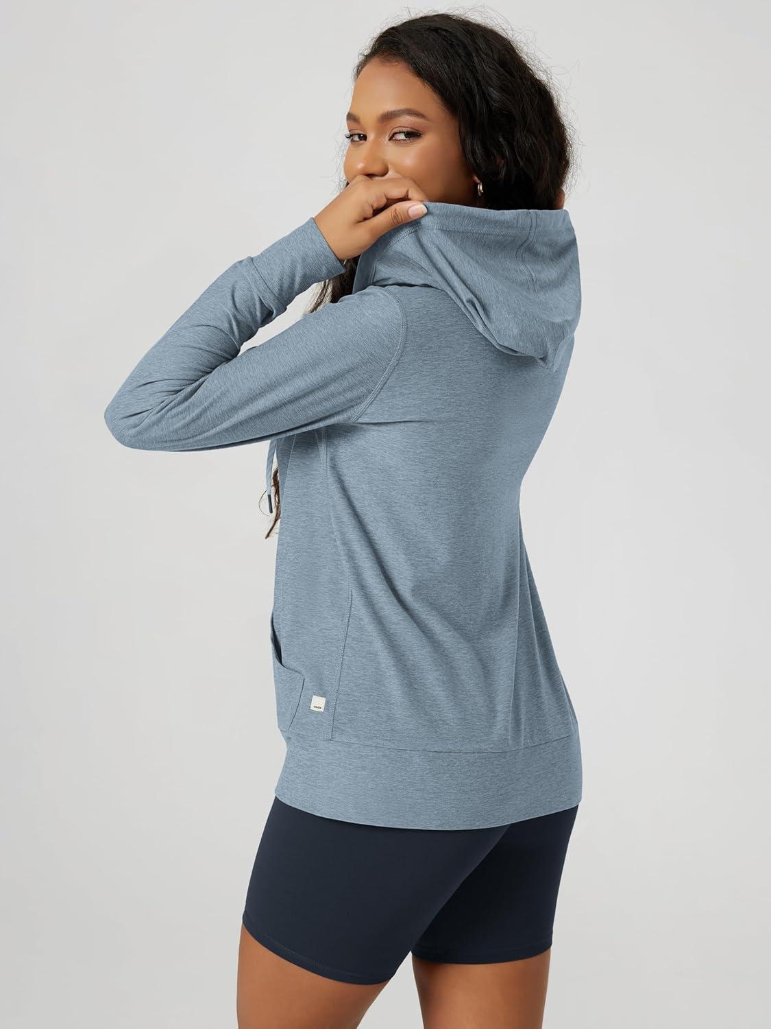ODODOS Women’s Full-Zip Hoodie – Stratum Tech Ultra Soft Outfit UPF 50+ Performance Hooded Jacket with Pockets(Dusty Blue Heather)