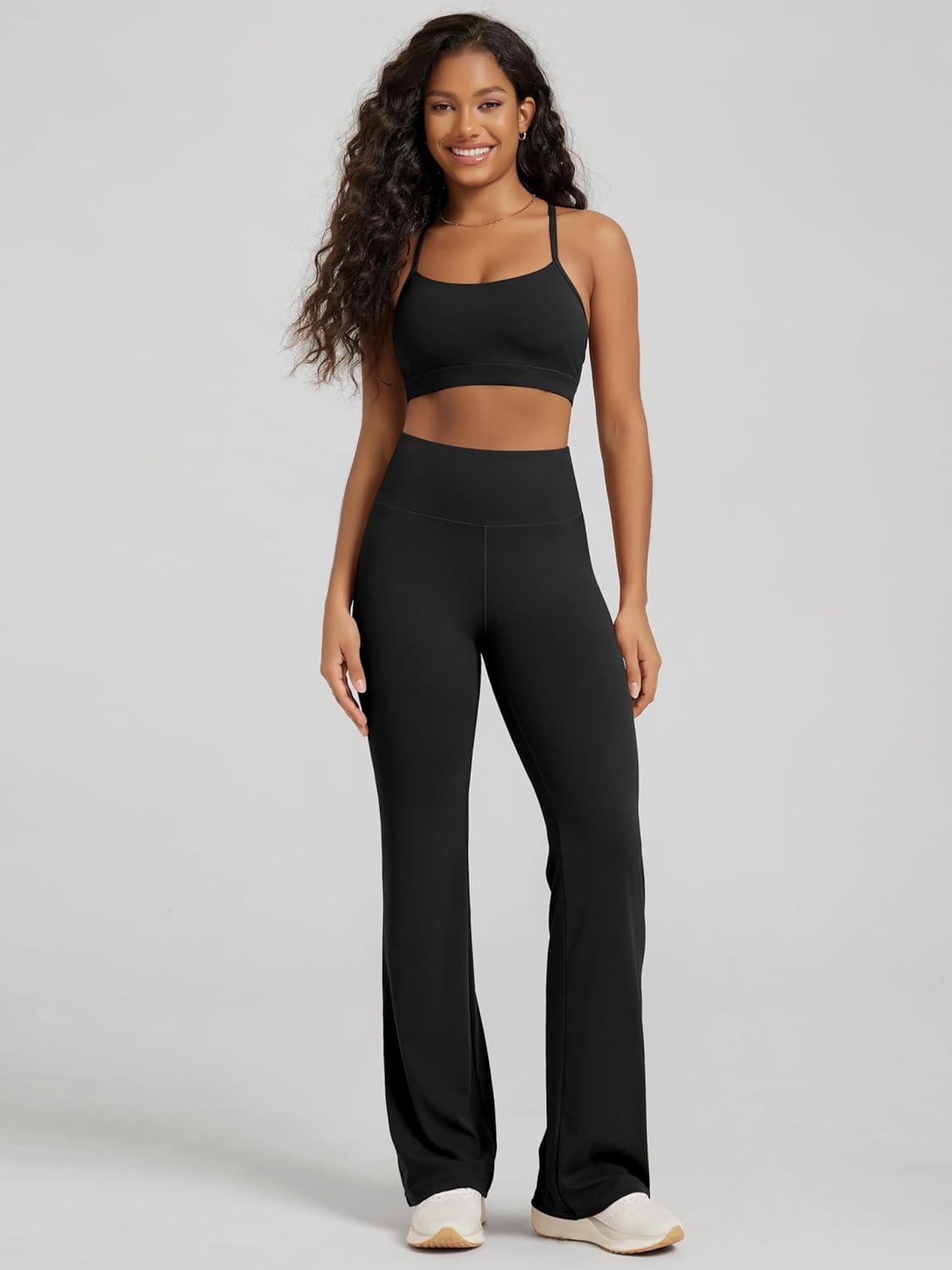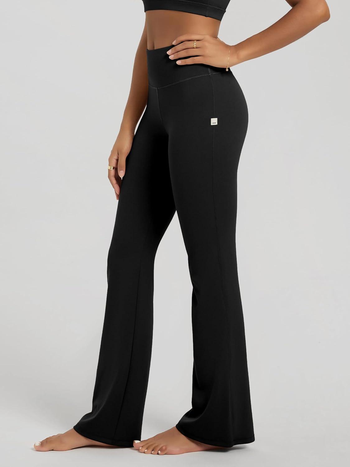 ODODOS Women’s High Waist Flared Yoga Pants 2.0 Tummy Control Gym Workout Bootcut Leggings with Inner Pocket -29″ /31″ Inseam(Black)