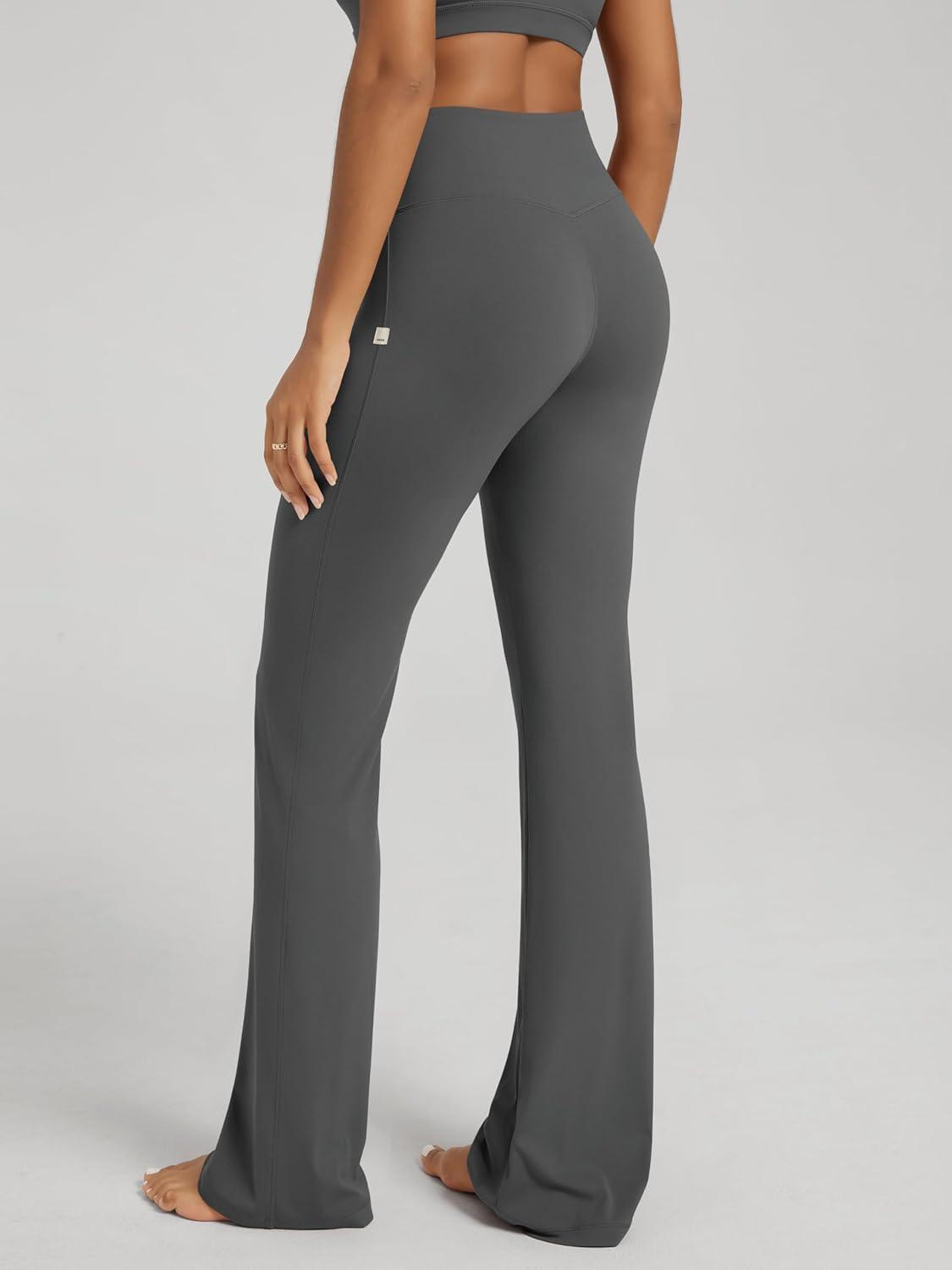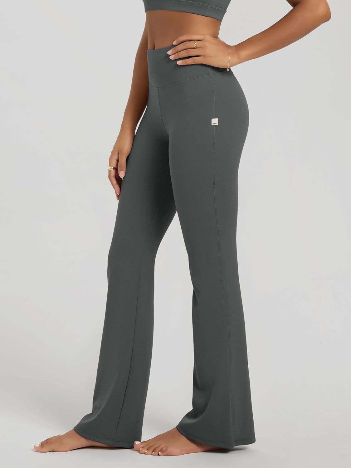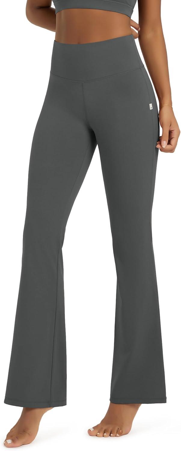 ODODOS Women’s High Waist Flared Yoga Pants 2.0 Tummy Control Gym Workout Bootcut Leggings with Inner Pocket -29″ /31″ Inseam(Charcoal)