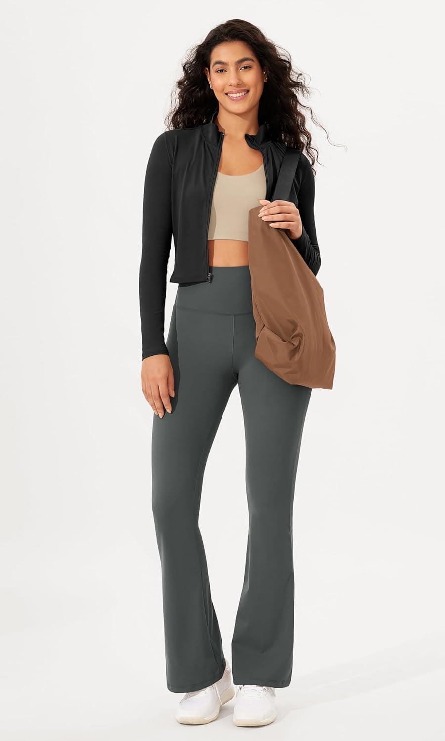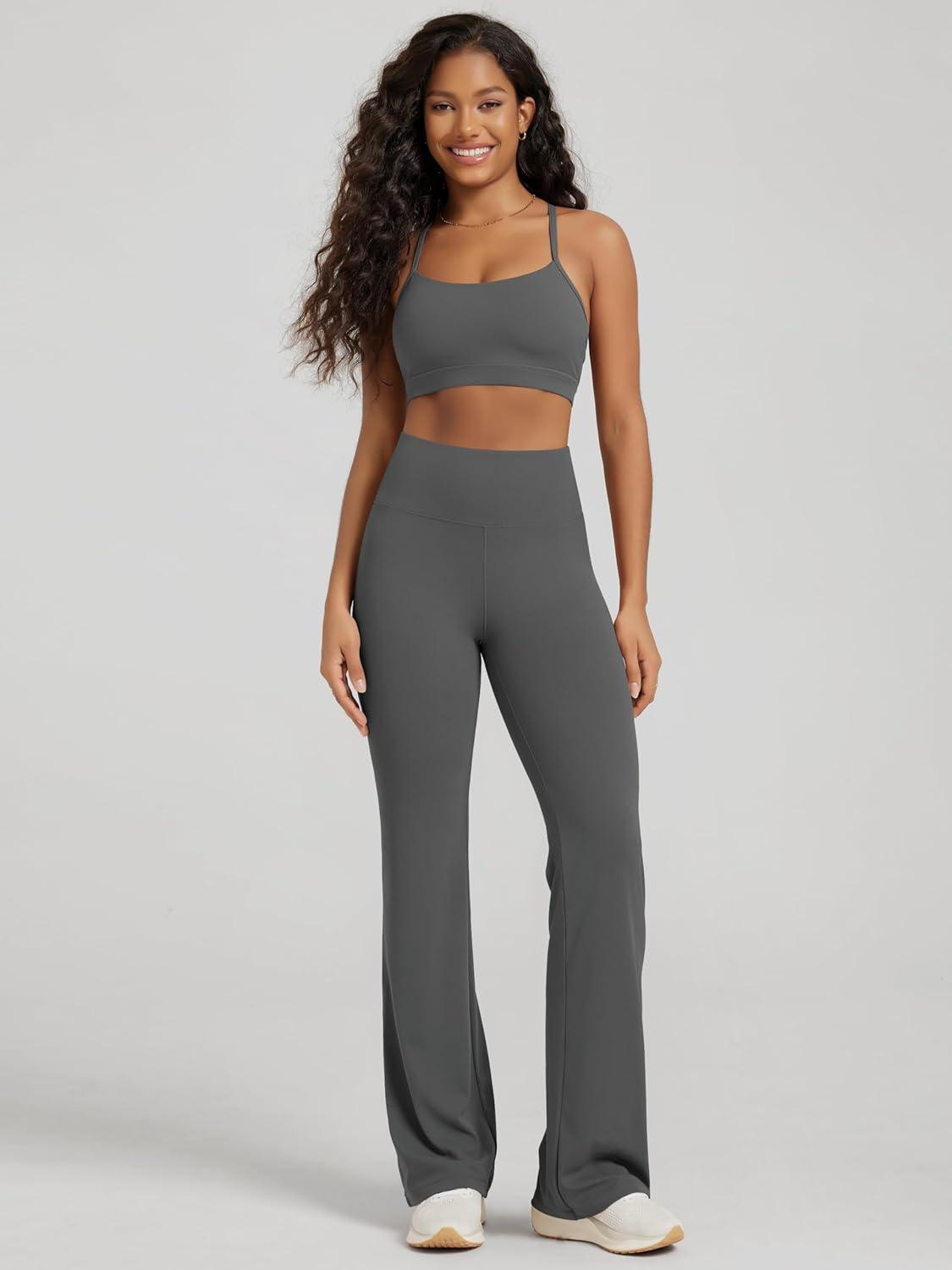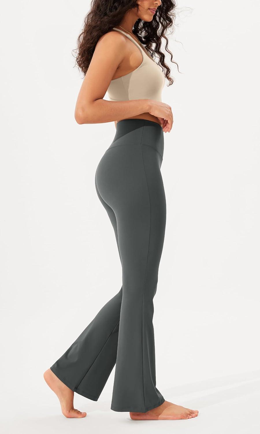 ODODOS Women’s High Waist Flared Yoga Pants 2.0 Tummy Control Gym Workout Bootcut Leggings with Inner Pocket -29″ /31″ Inseam(Charcoal)
