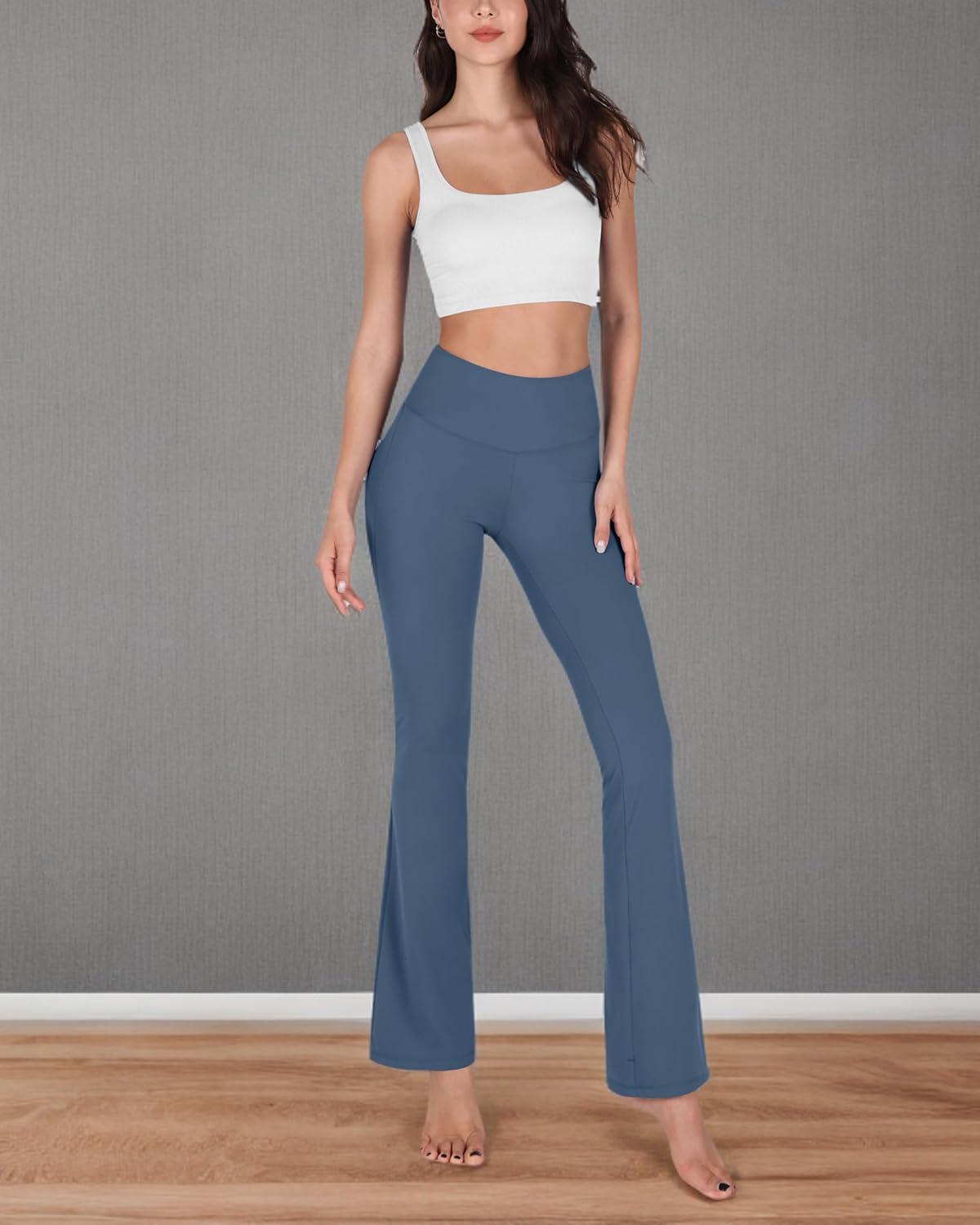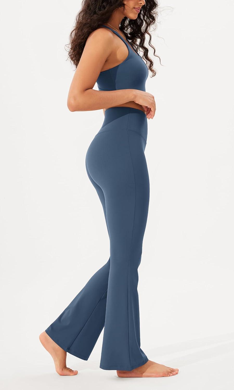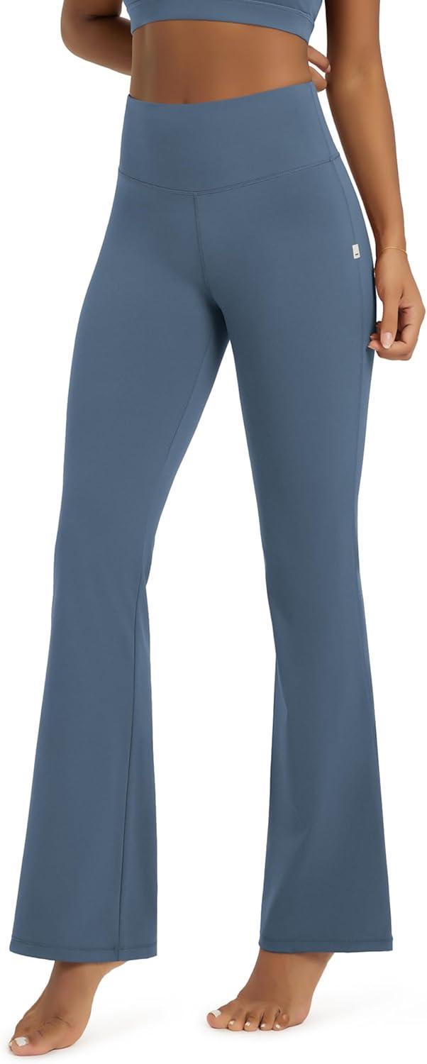 ODODOS Women’s High Waist Flared Yoga Pants 2.0 Tummy Control Gym Workout Bootcut Leggings with Inner Pocket -29″ /31″ Inseam(Ink Blue)