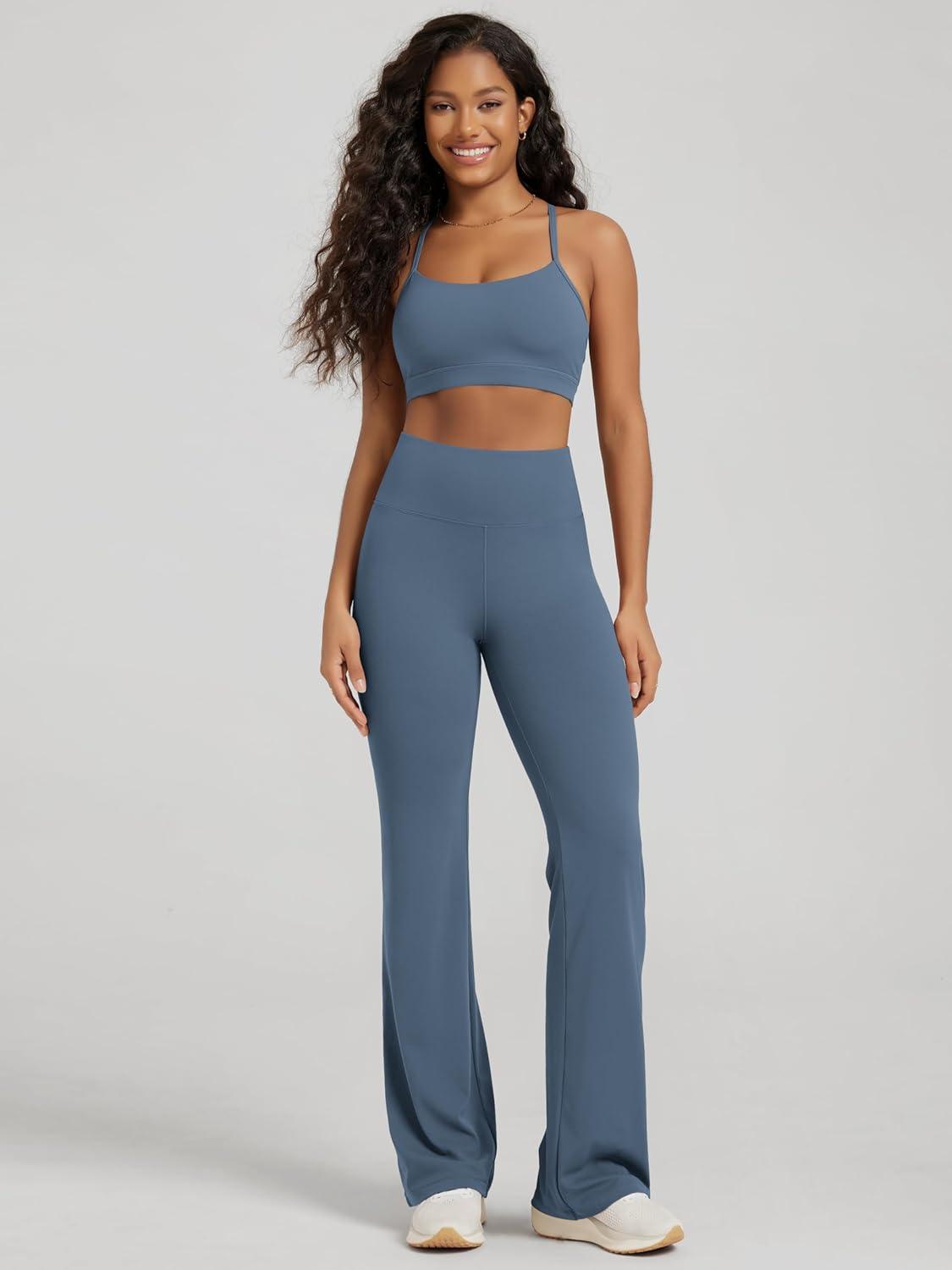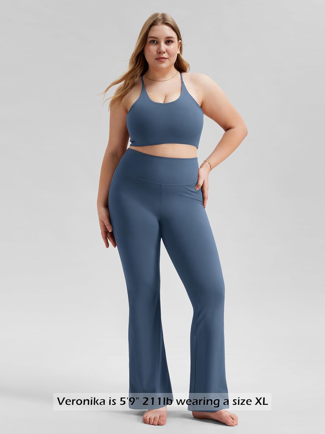 imageODODOS Womens High Waist Flared Yoga Pants 20 Tummy Control Gym Workout Bootcut Leggings with Inner Pocket 29quot 31quot InseamNavy
