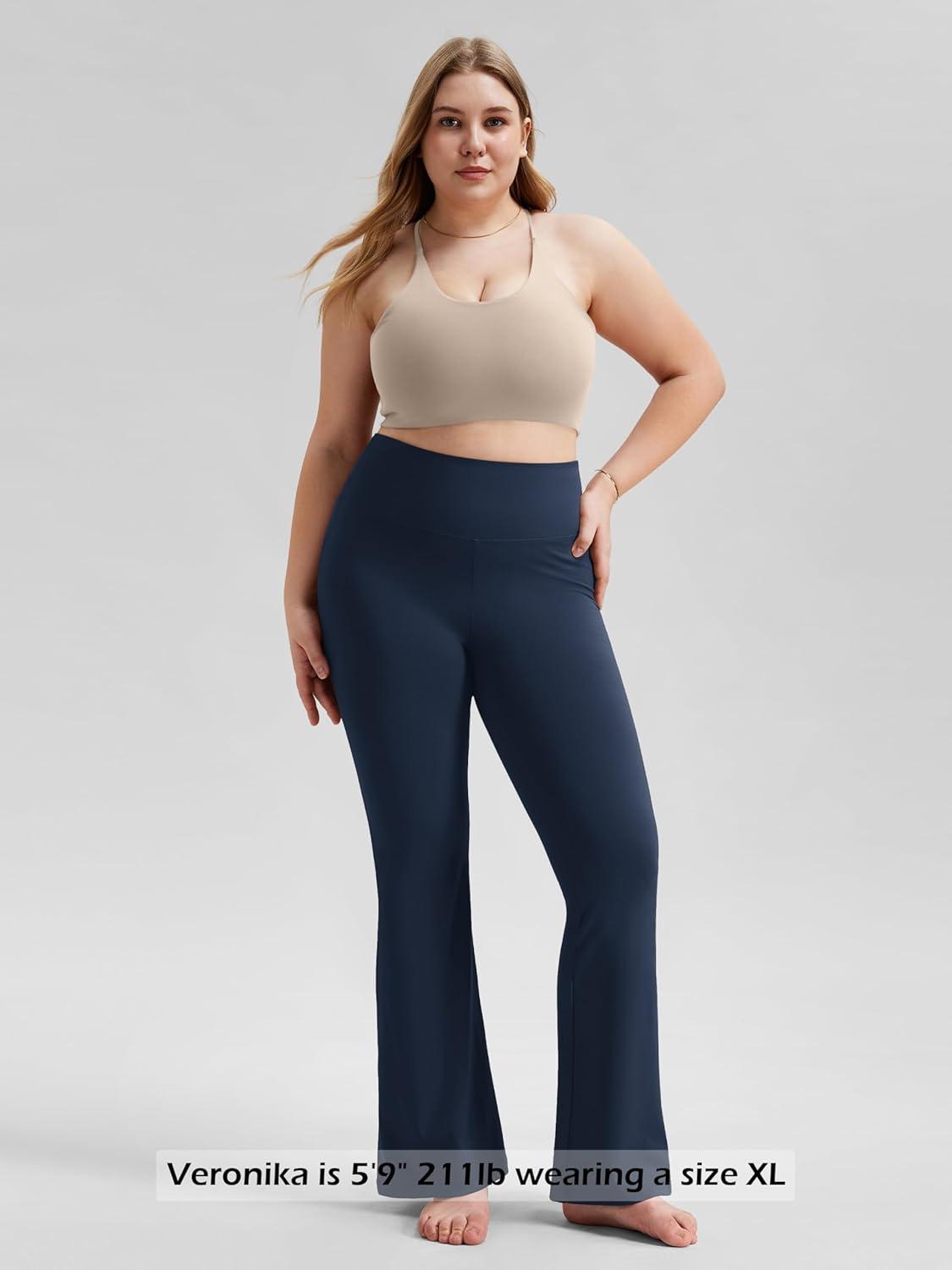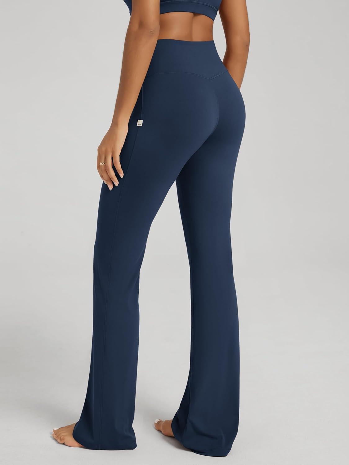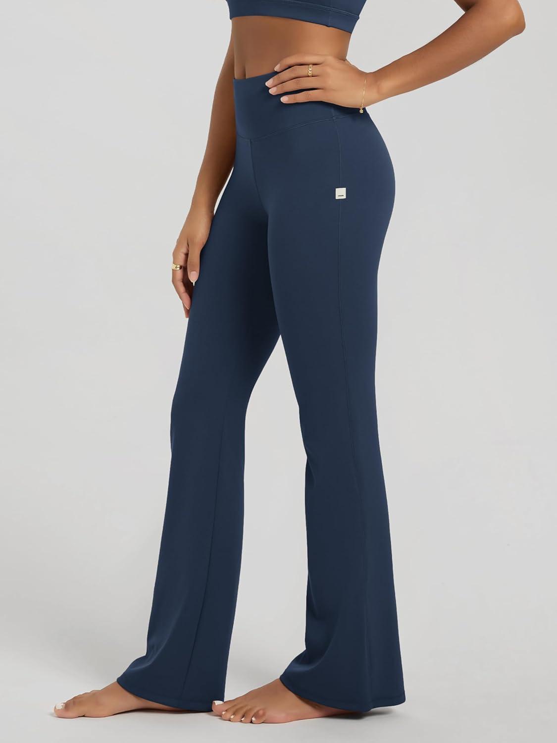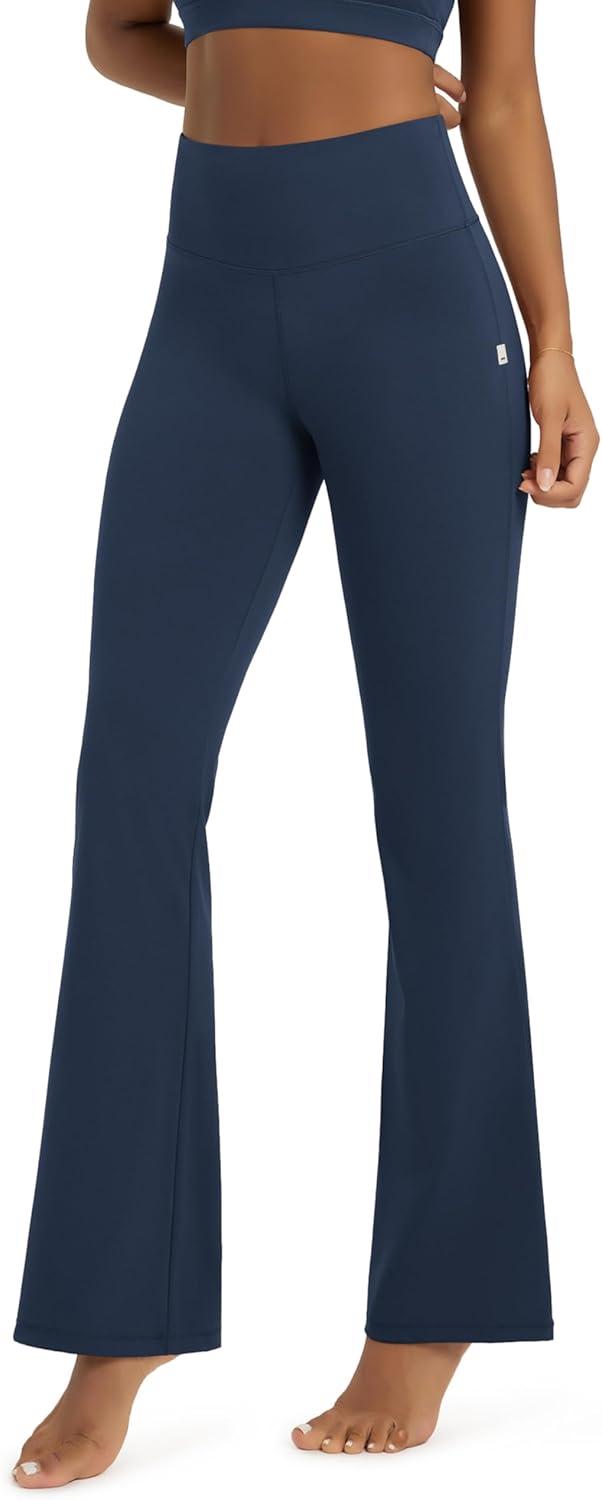 ODODOS Women’s High Waist Flared Yoga Pants 2.0 Tummy Control Gym Workout Bootcut Leggings with Inner Pocket -29″ /31″ Inseam(Ink Blue)