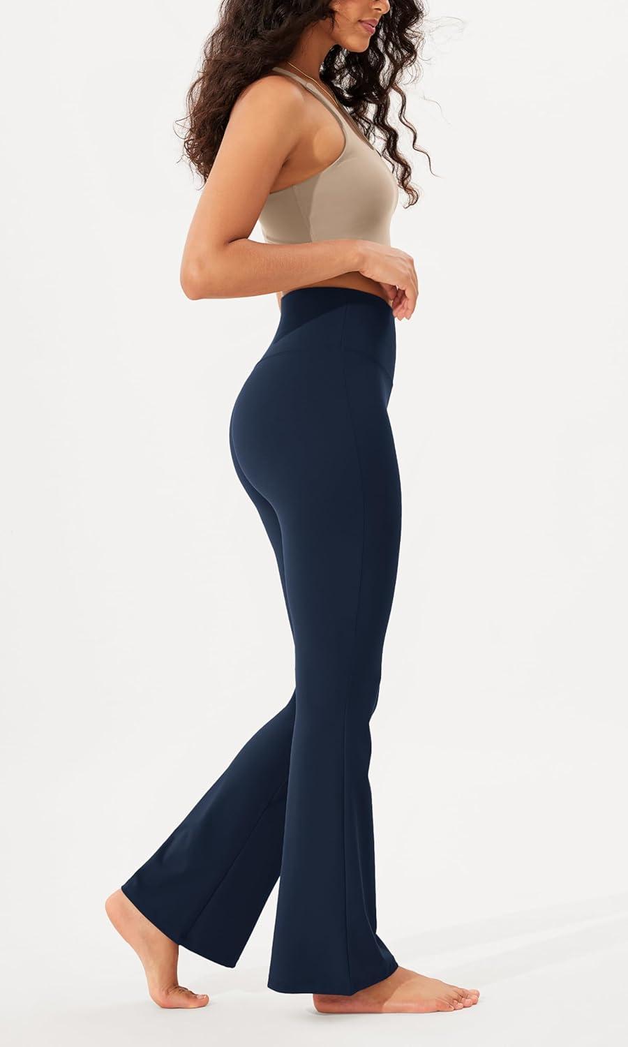 ODODOS Women’s High Waist Flared Yoga Pants 2.0 Tummy Control Gym Workout Bootcut Leggings with Inner Pocket -29″ /31″ Inseam(Navy)