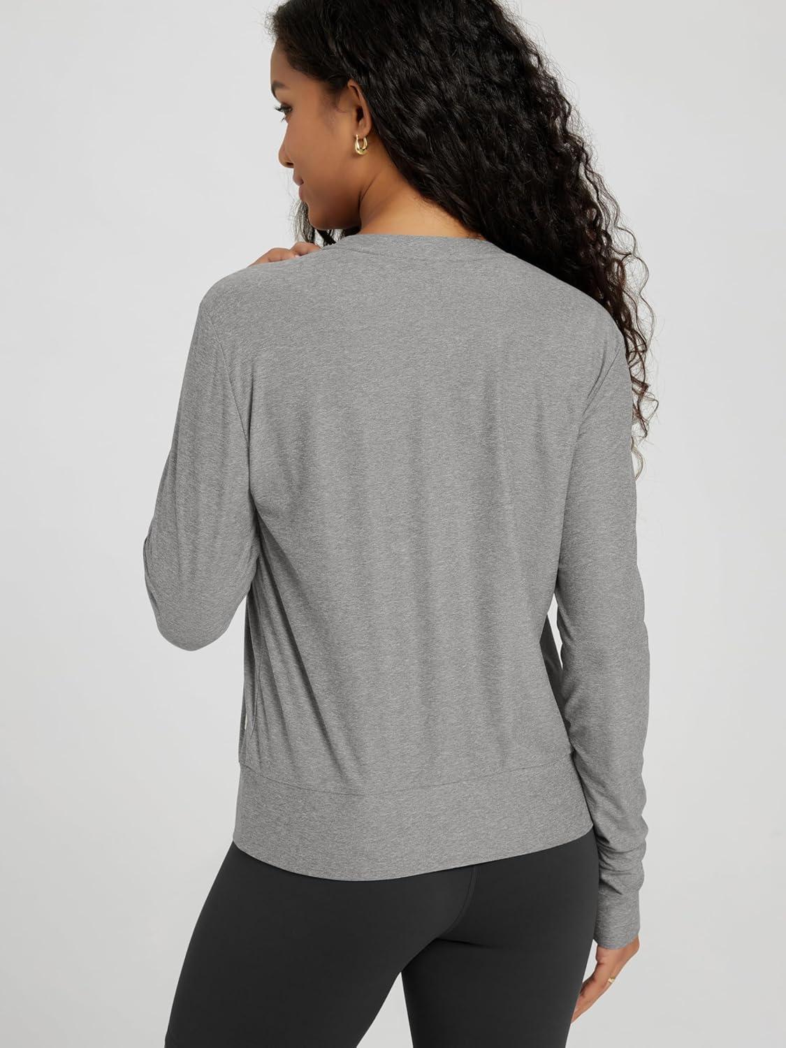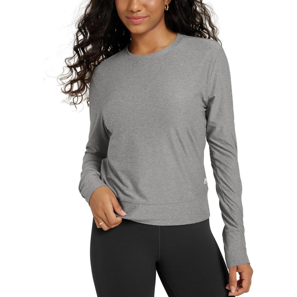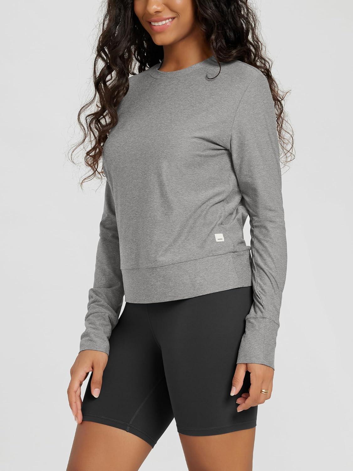 ODODOS Women’s Long Sleeve Crewneck Tee – Ultra-Soft Stratum Tech Performance T-Shirts UPF 50+ Daily Pullover Tops(Grey Heather)