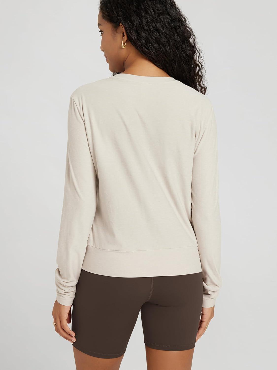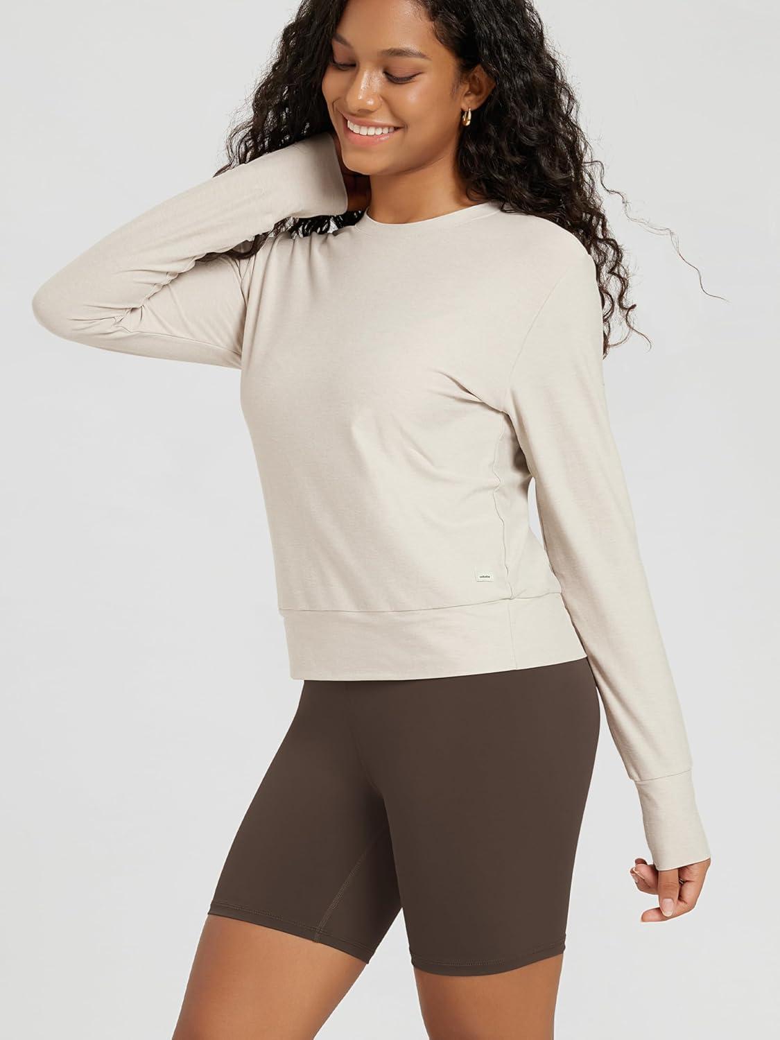 ODODOS Women’s Long Sleeve Crewneck Tee – Ultra-Soft Stratum Tech Performance T-Shirts UPF 50+ Daily Pullover Tops(Milkweed Heather)