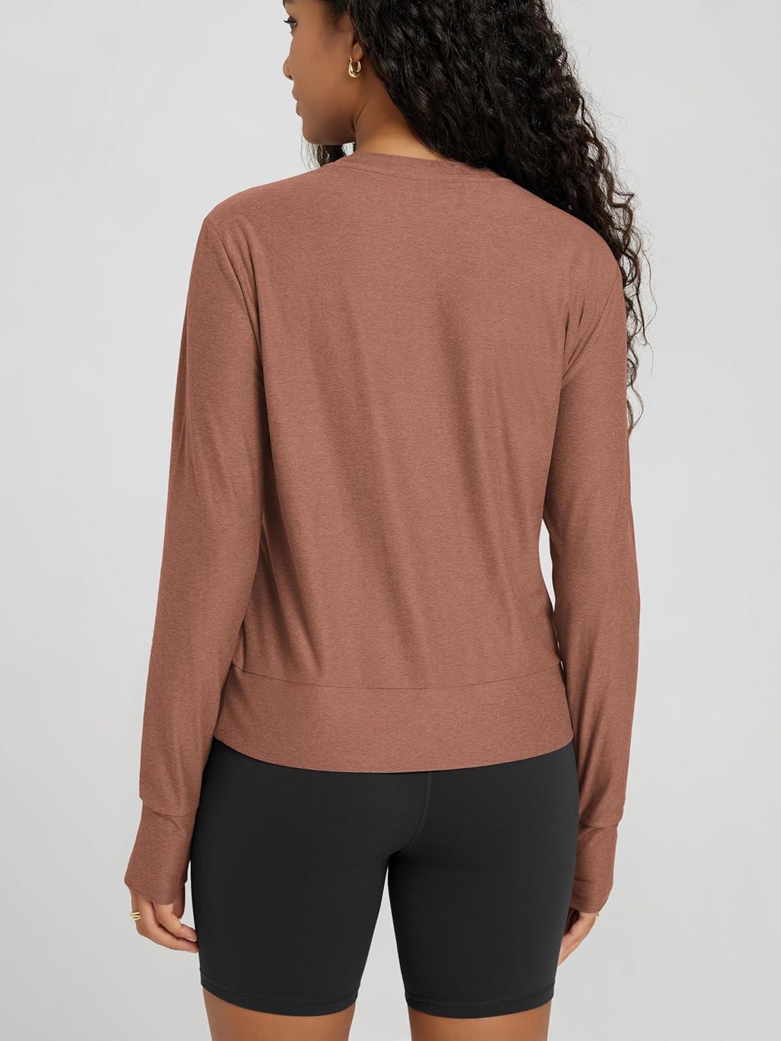 ODODOS Women’s Long Sleeve Crewneck Tee – Ultra-Soft Stratum Tech Performance T-Shirts UPF 50+ Daily Pullover Tops(Tamarind Heather)