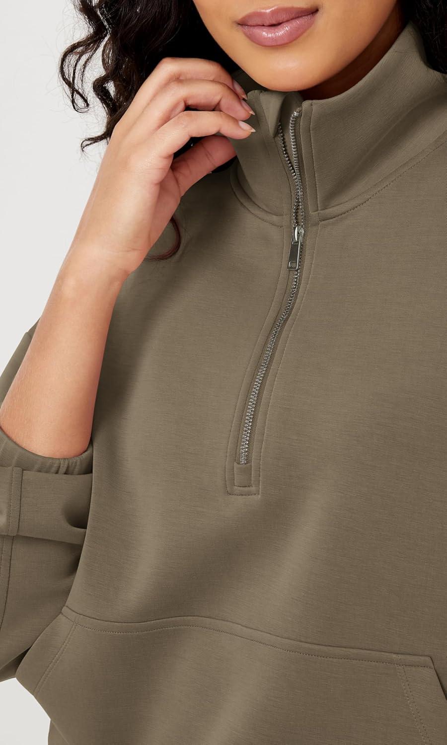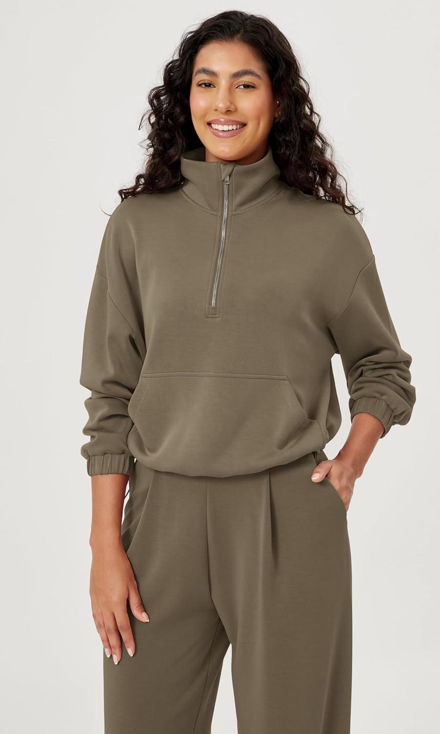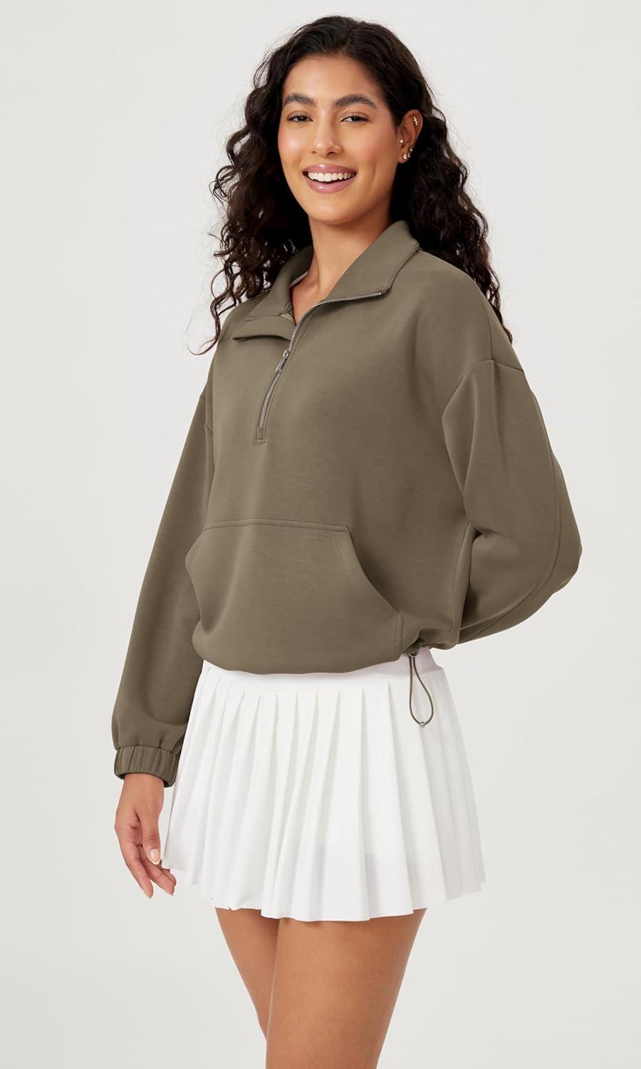 ODODOS Women’s Modal Soft Cinchable Sweatshirts Half Zipper Funnel Neck Oversize Pullover with Pockets(Espresso)