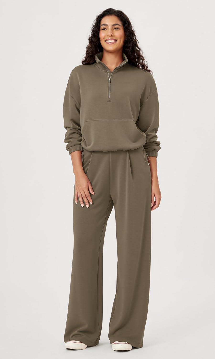 imageODODOS Womens Modal Soft Cinchable Sweatshirts Half Zipper Funnel Neck Oversize Pullover with PocketsFog Green