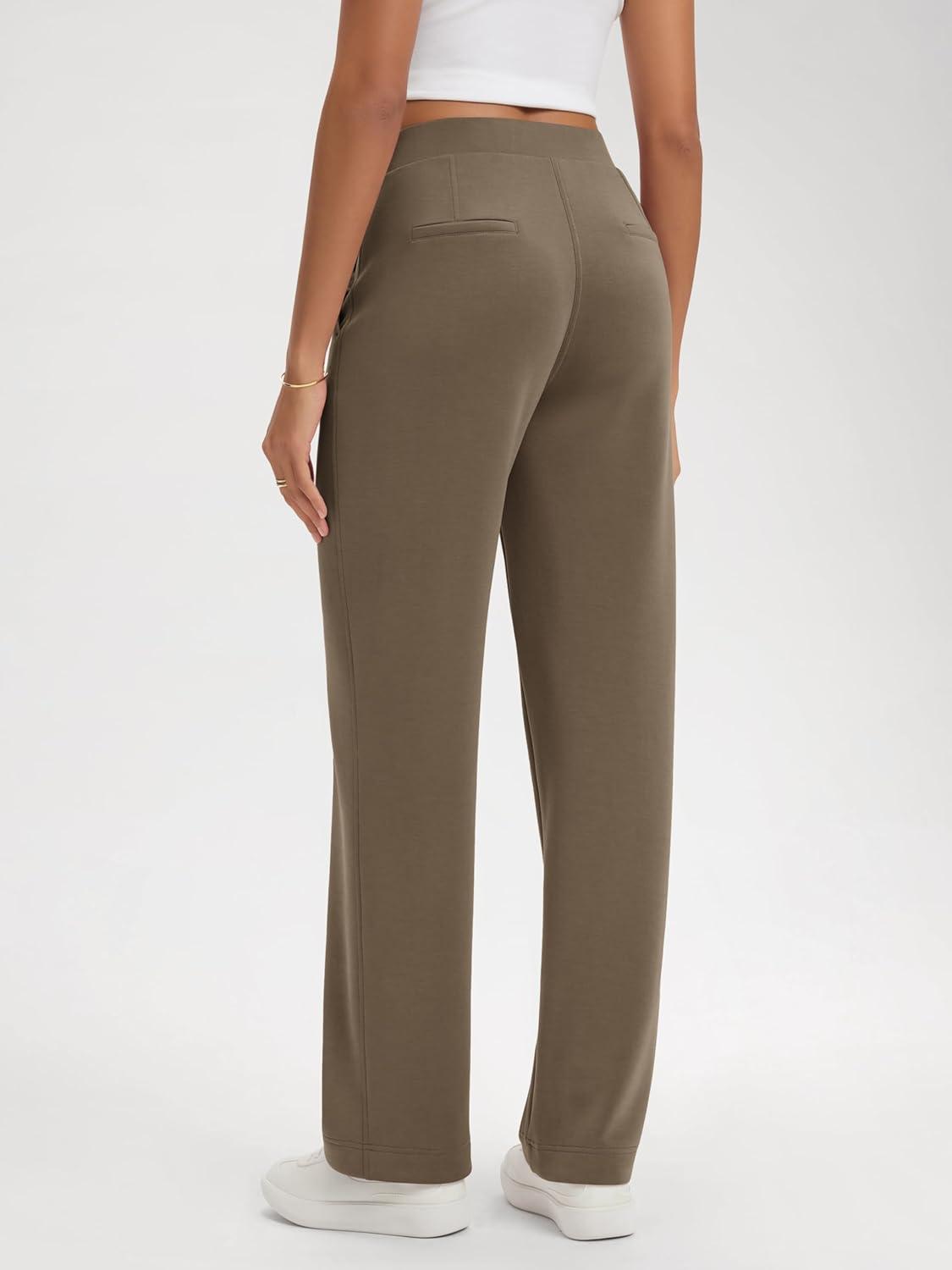 ODODOS Women’s Modal Soft Classic Pants Mid Rise Pull-On Lounge Casual Work Pants with Pockets- 27″ / 29″ / 31″ Inseam(Espresso)