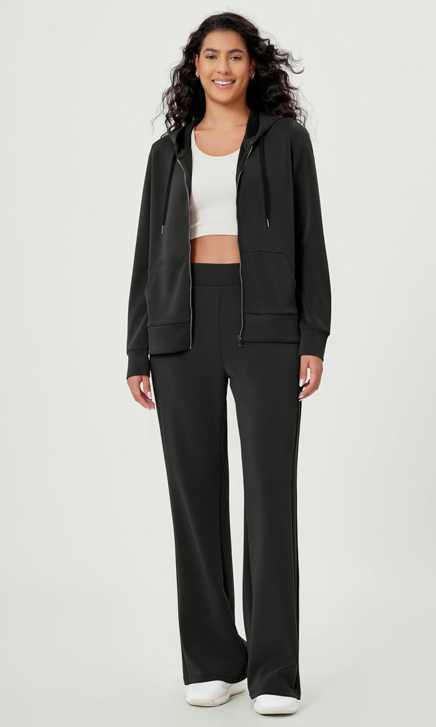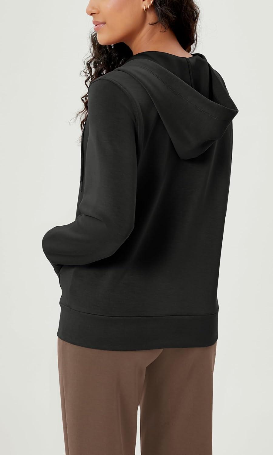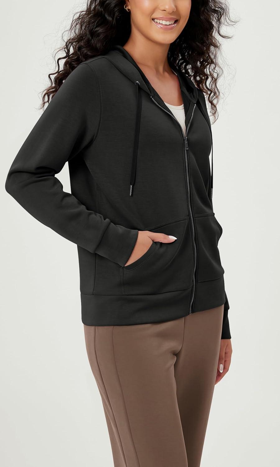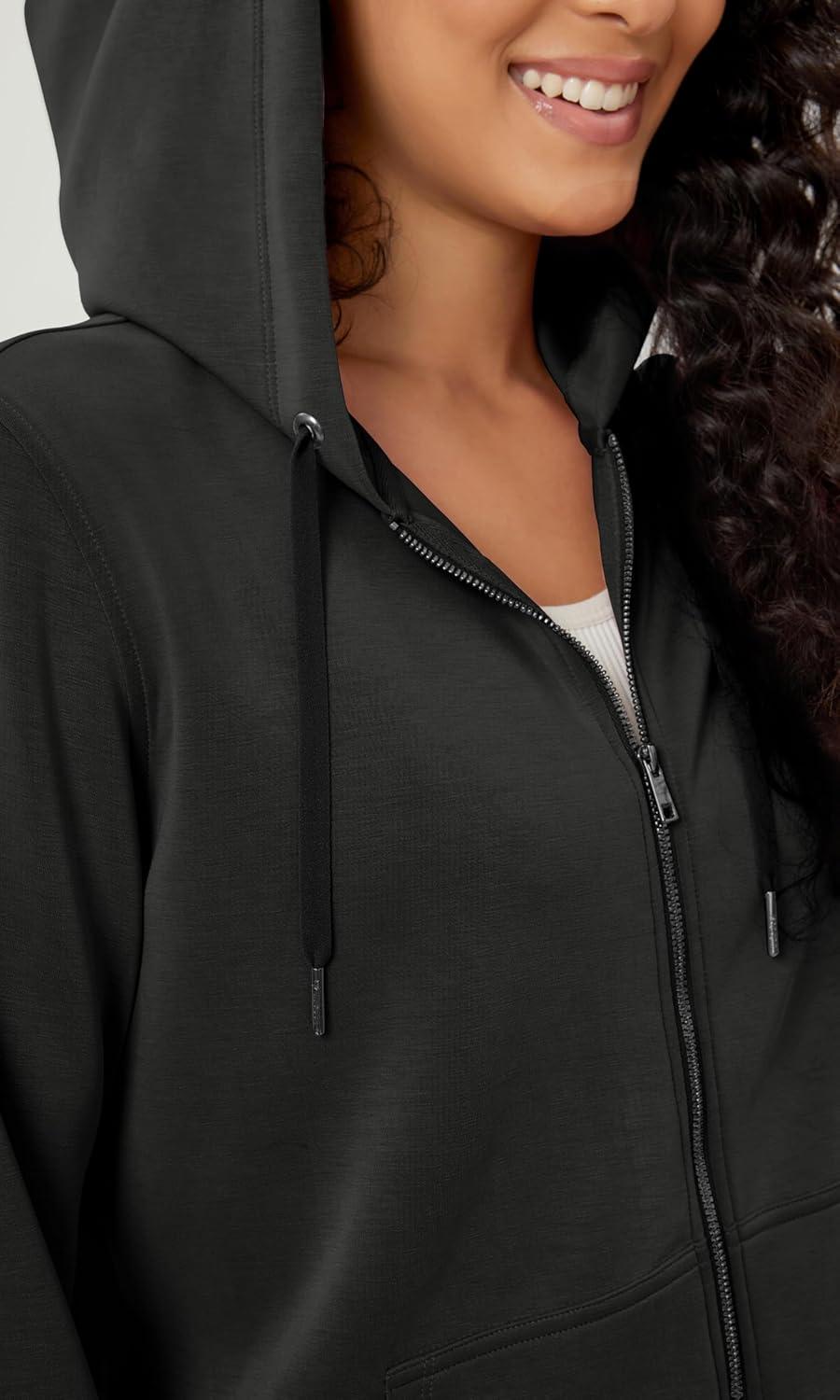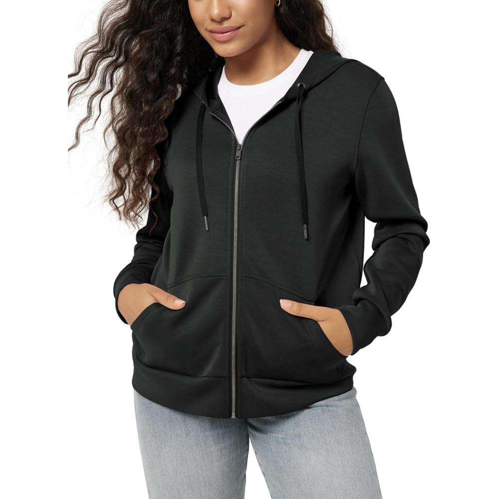 ODODOS Women’s Modal Soft Full-Zip Hoodies Casual Relaxed Fall Outfit Hooded Jacket with Pockets(Black)