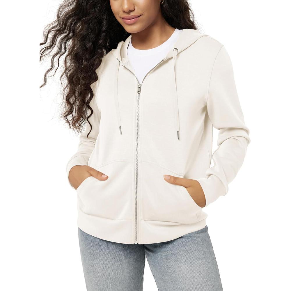 ODODOS Women’s Modal Soft Full-Zip Hoodies Casual Relaxed Fall Outfit Hooded Jacket with Pockets(Ivory)