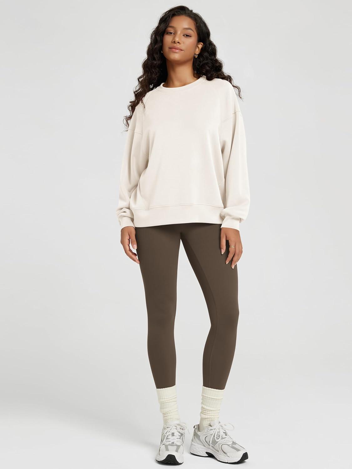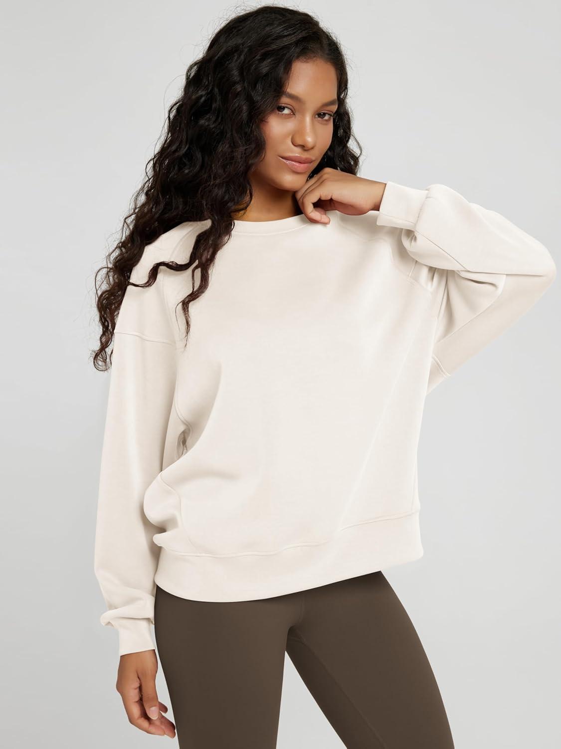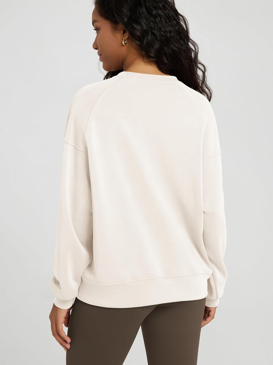 ODODOS Women’s Modal Soft Raglan Long Sleeve Sweatshirts Oversized Crew Neck Relaxed Pullover Top Fall Outfits(Ivory)