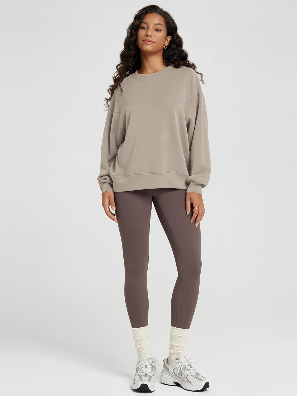 ODODOS Women’s Modal Soft Raglan Long Sleeve Sweatshirts Oversized Crew Neck Relaxed Pullover Top Fall Outfits(Nutria)