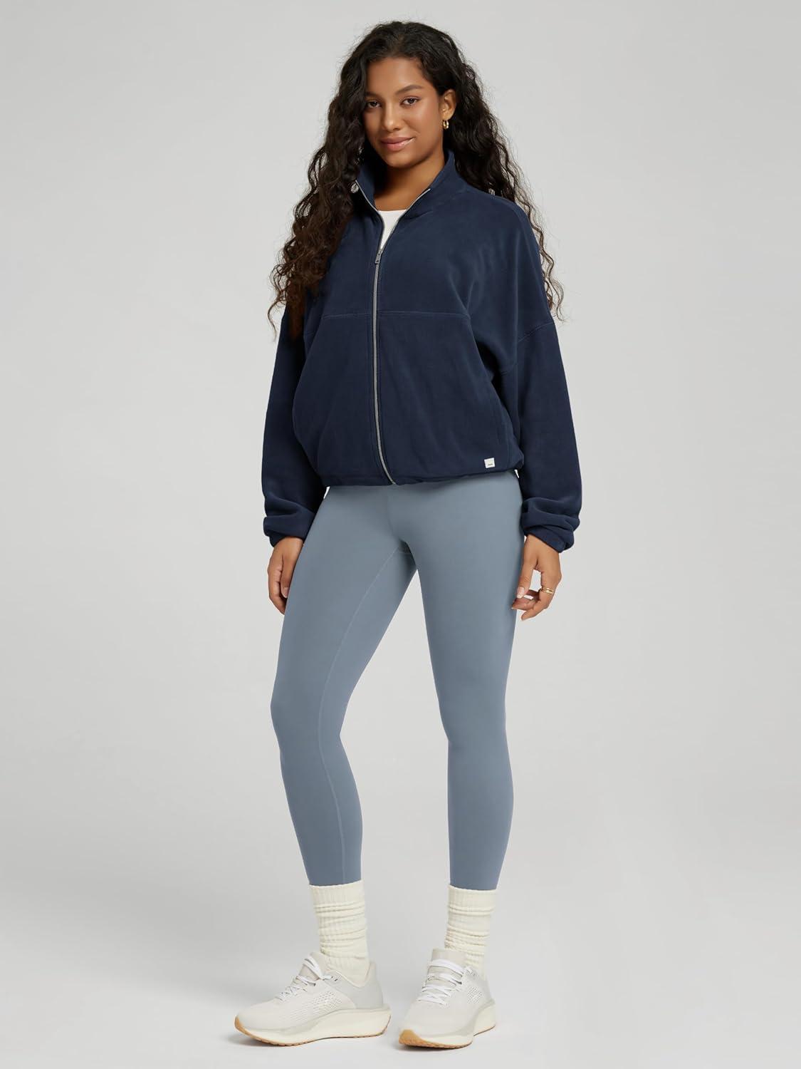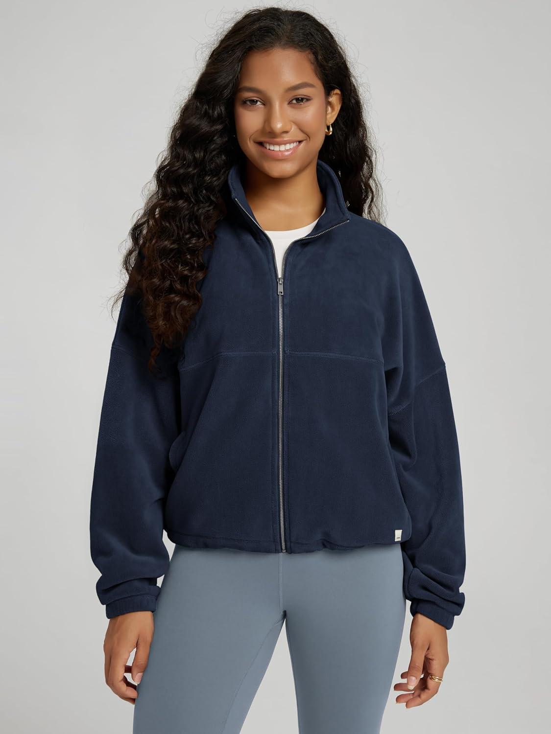 ODODOS Women’s Polar Fleece Full-Zip Cinchable Jacket – Soft Warm Winter Long Sleeve Outerwear with Pockets(Dark Navy)