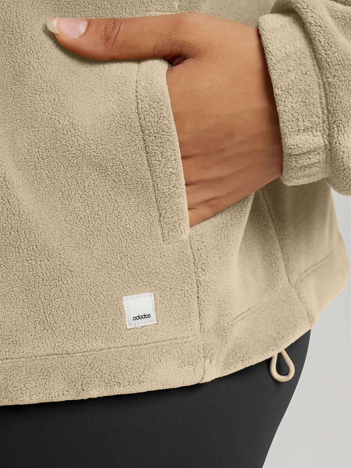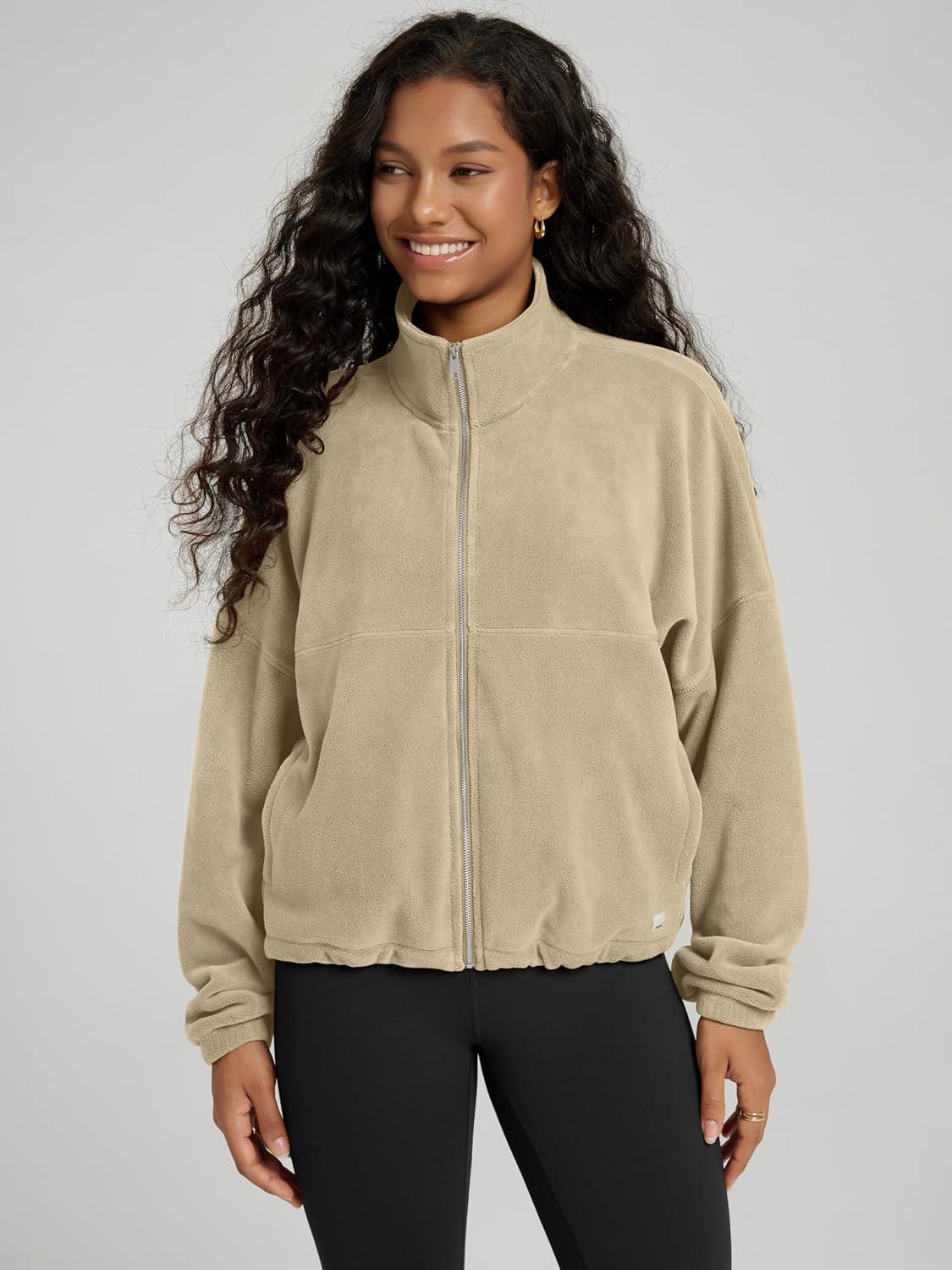 ODODOS Women’s Polar Fleece Full-Zip Cinchable Jacket – Soft Warm Winter Long Sleeve Outerwear with Pockets(Sandstone)