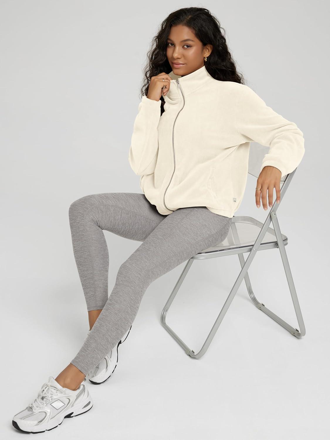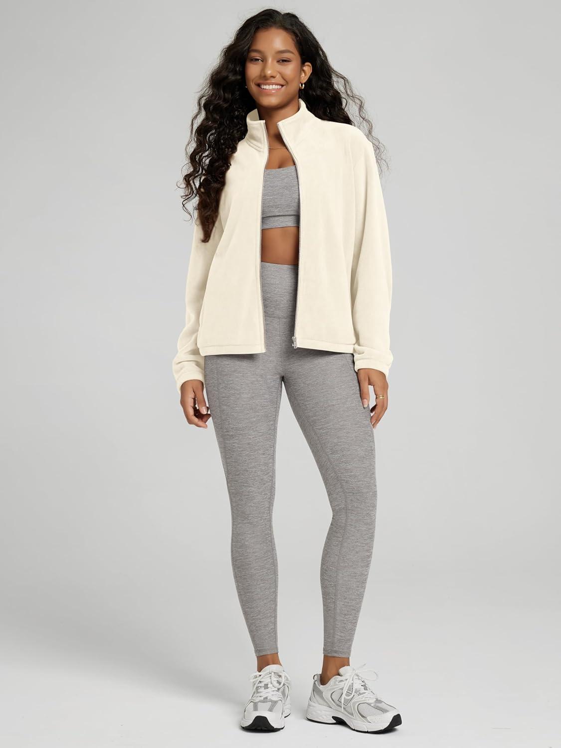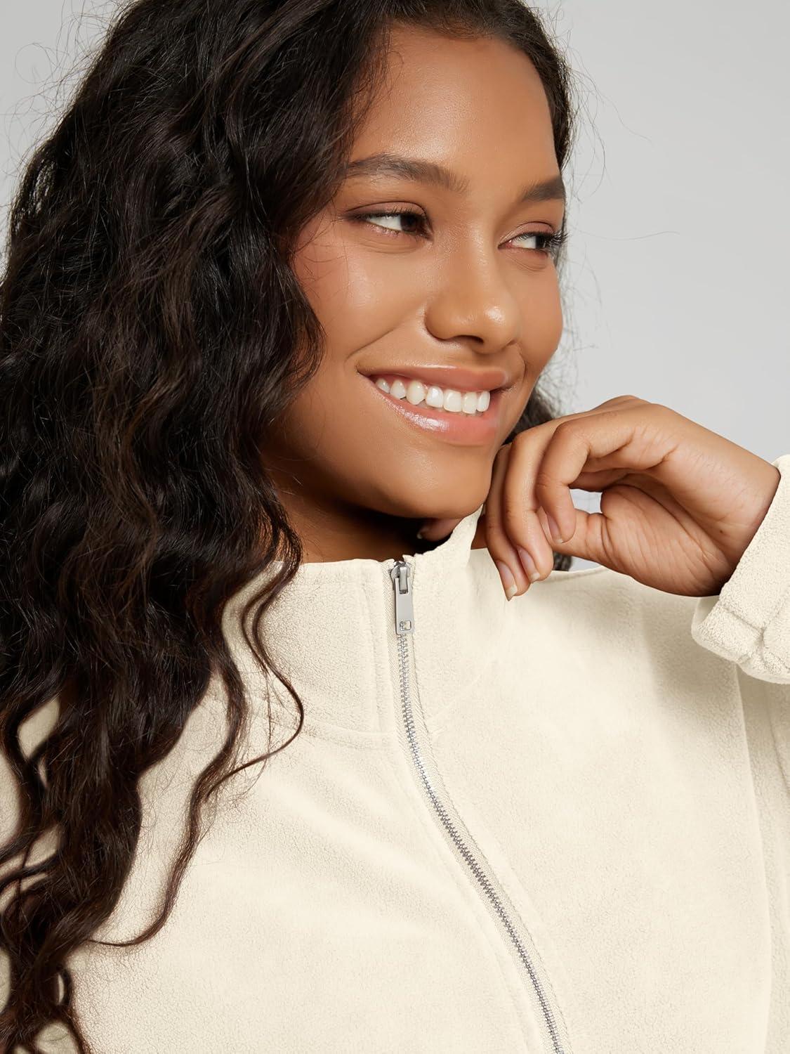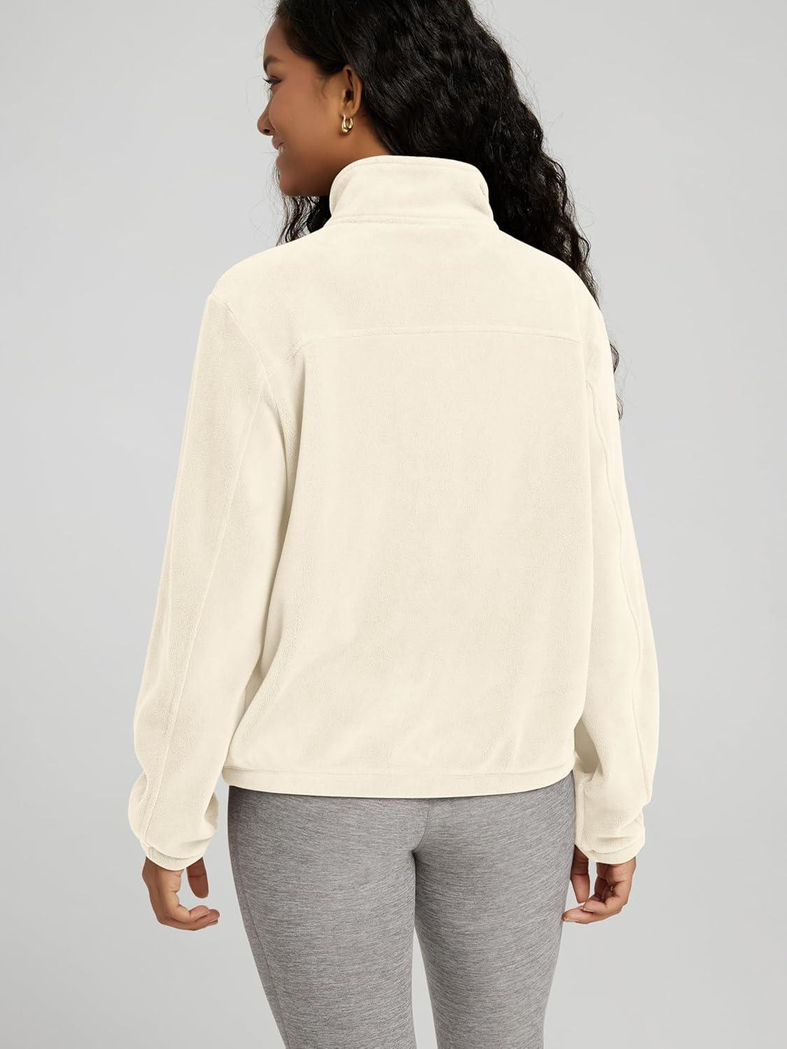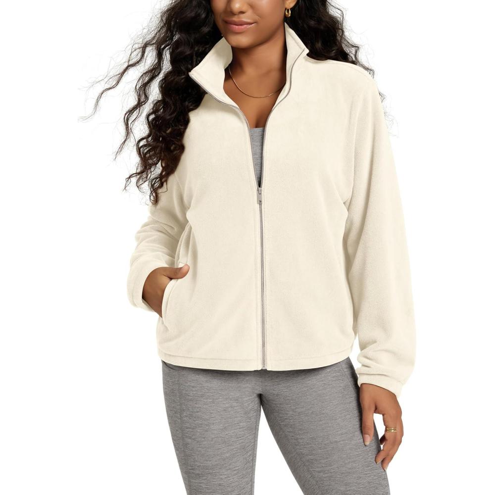 ODODOS Women’s Polar Fleece Full-Zip Jacket – Soft Warm Winter Essential Long Sleeve Outerwear with Pockets(Cream)