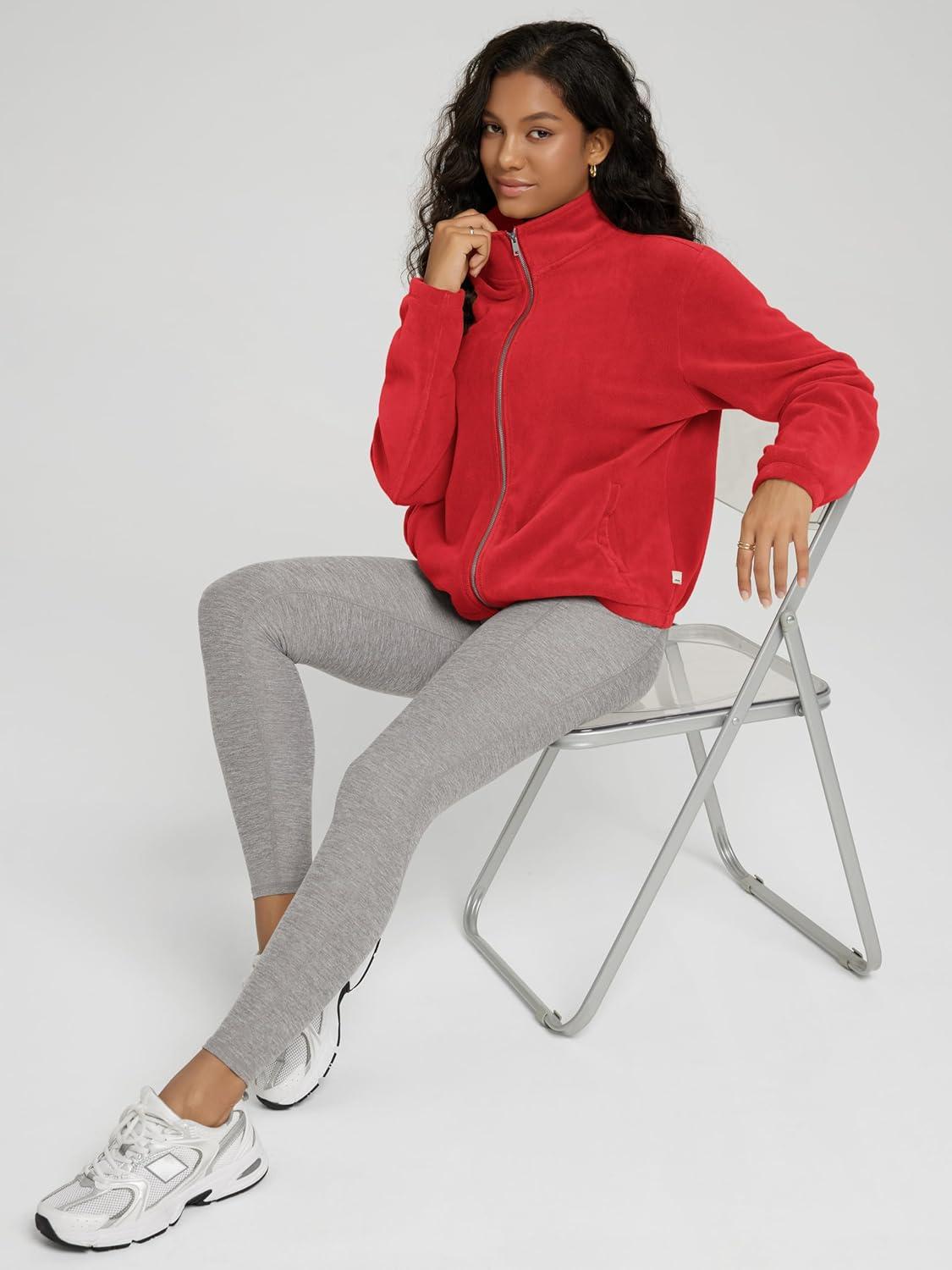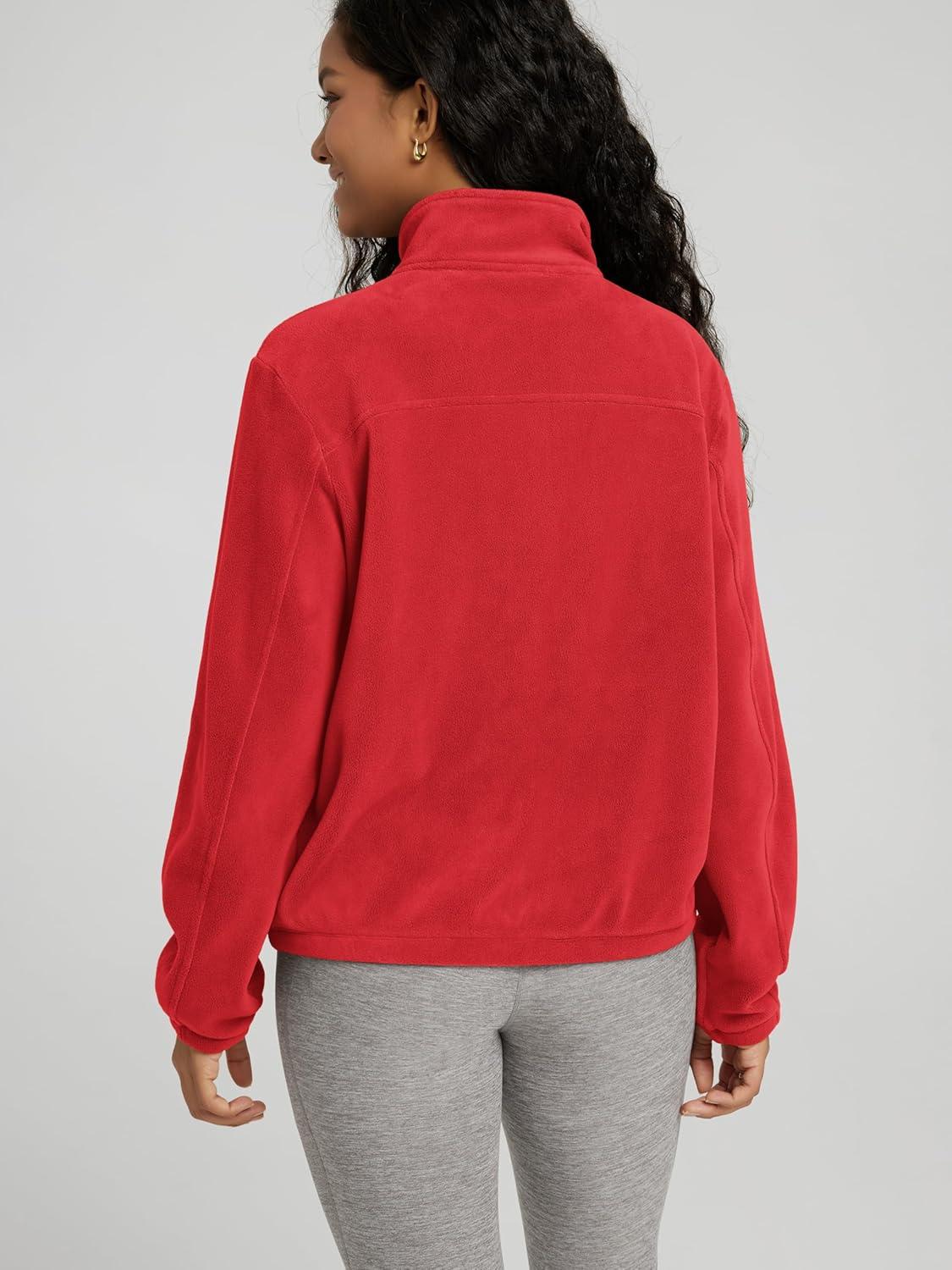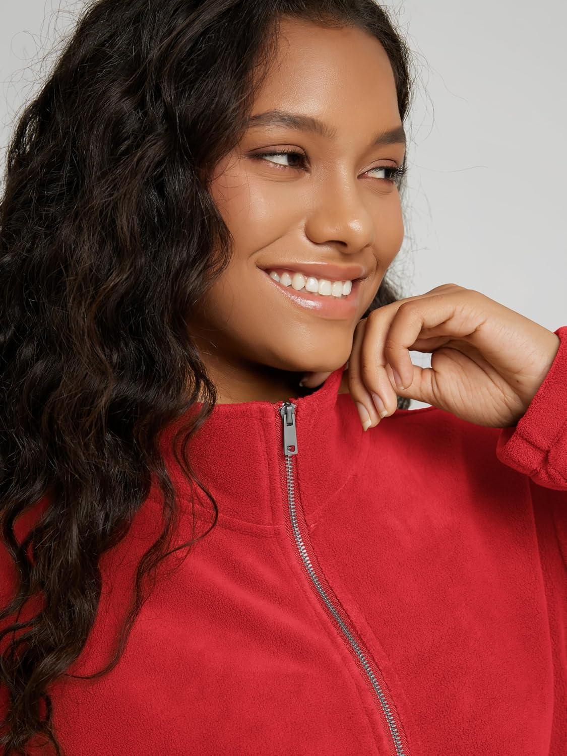 ODODOS Women’s Polar Fleece Full-Zip Jacket – Soft Warm Winter Essential Long Sleeve Outerwear with Pockets(Red)
