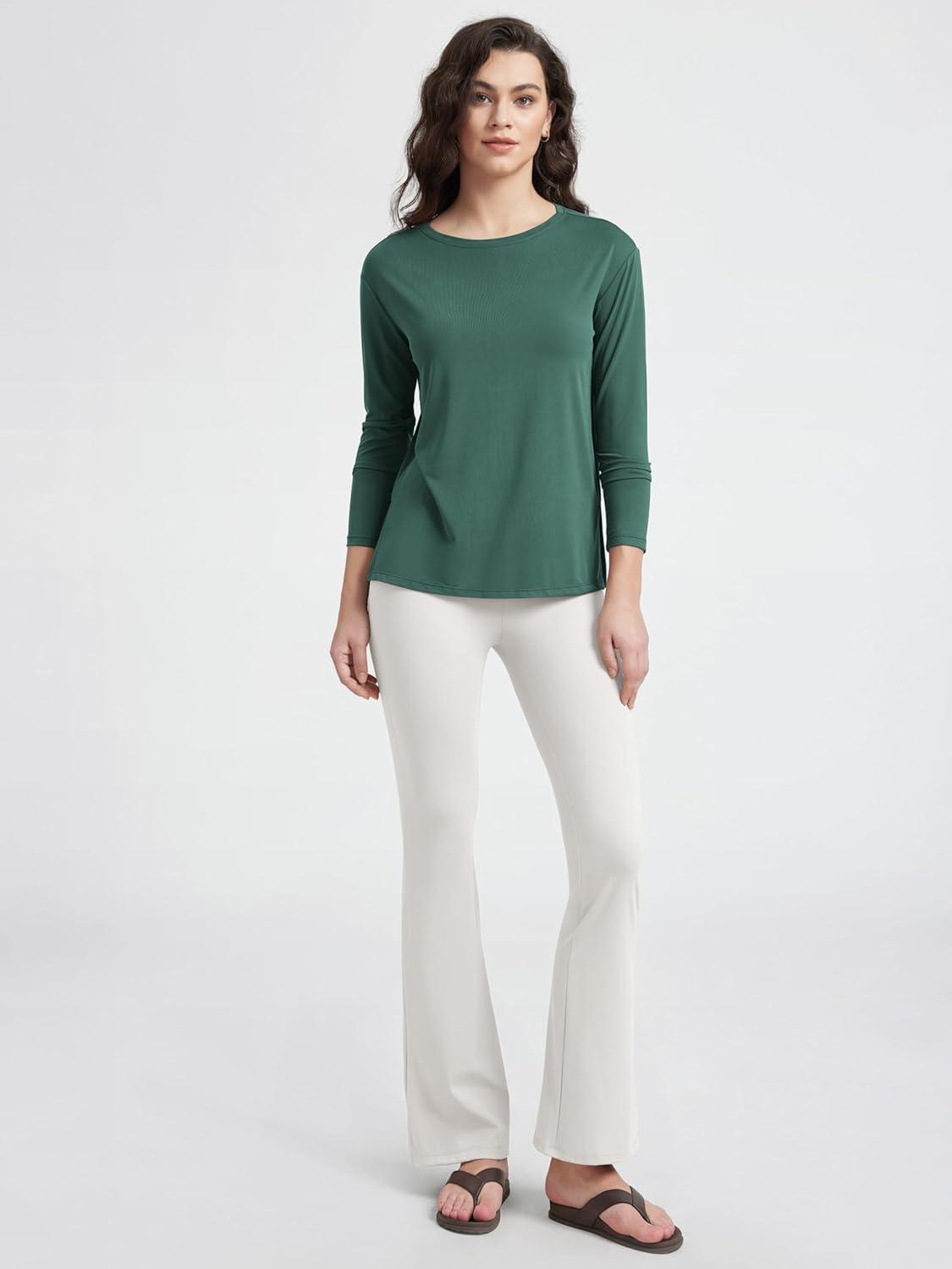 Be the first to review “ODODOS Women’s Relaxed Fit Long Sleeve Shirts Boat Neck Side Slit Peach-Soft Casual Lounge Yoga Tops(Dark Green)”