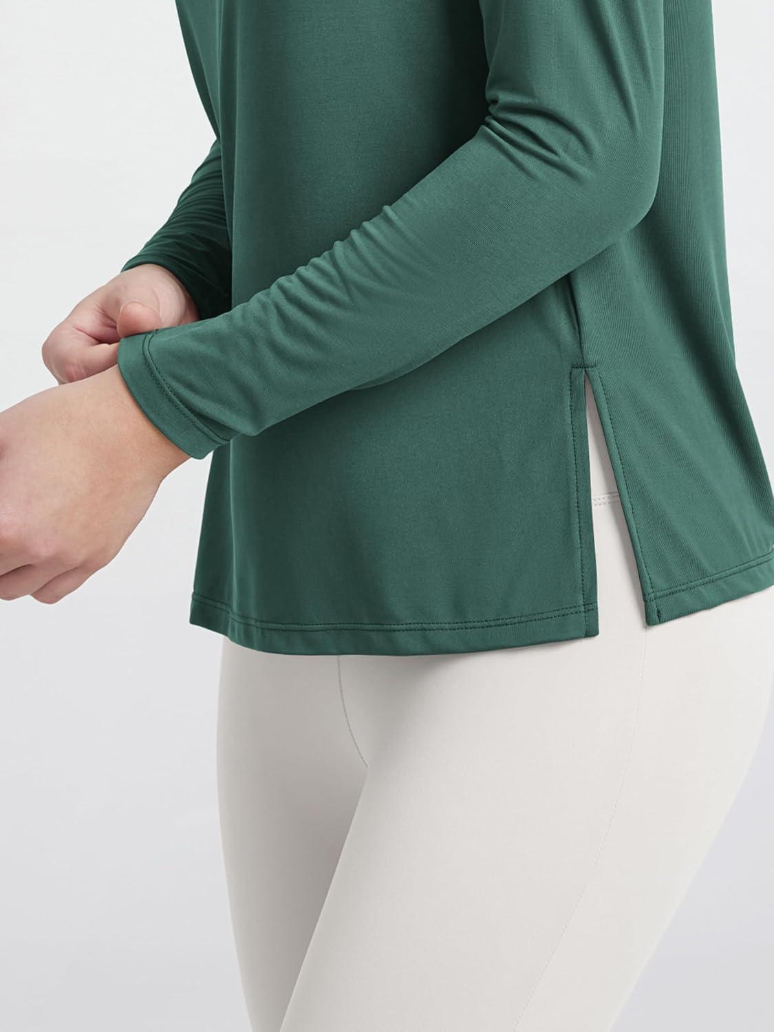 ODODOS Women’s Relaxed Fit Long Sleeve Shirts Boat Neck Side Slit Peach-Soft Casual Lounge Yoga Tops(Dark Green)