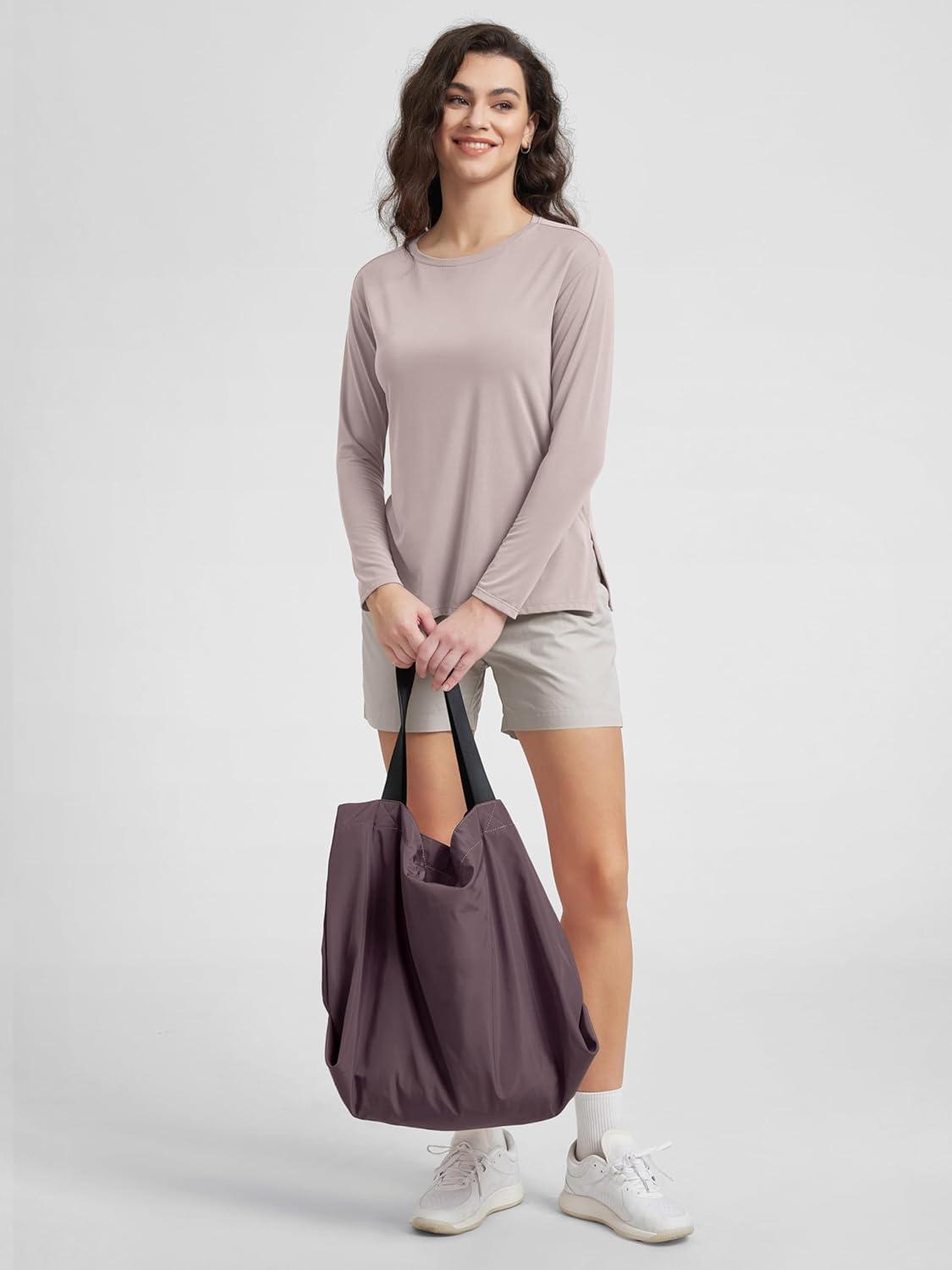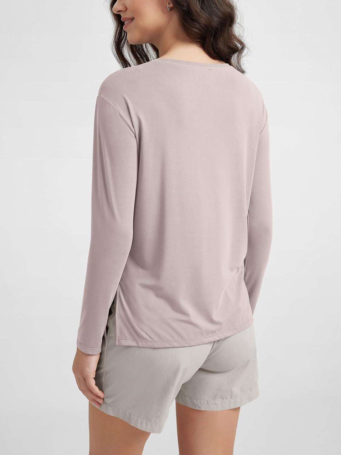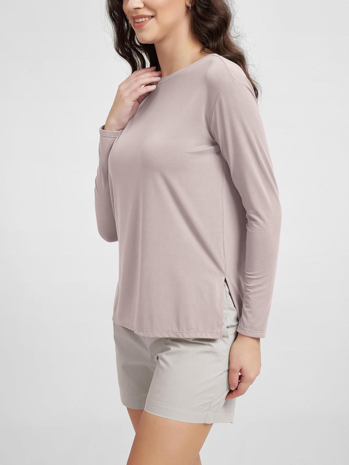 ODODOS Women’s Long Sleeve T-Shirt – Ultra Soft Stratum Tech Performance Top UPF 50+ Breathable Crew Neck Pullover(Java Heather)