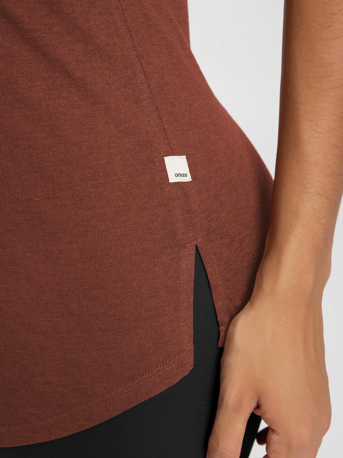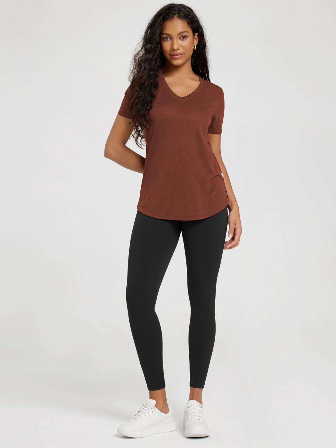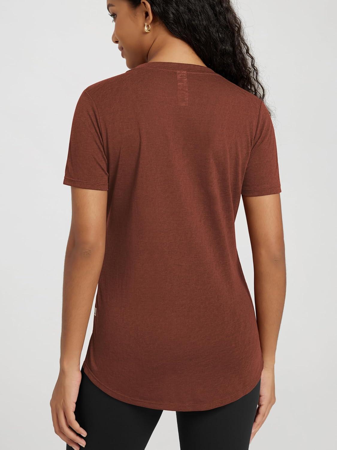 ODODOS Women’s Short Sleeve T-Shirts Graphene Ultralight Soft Breathable Side Slit V Neck Yoga Workout Casual Top(Rust Red)