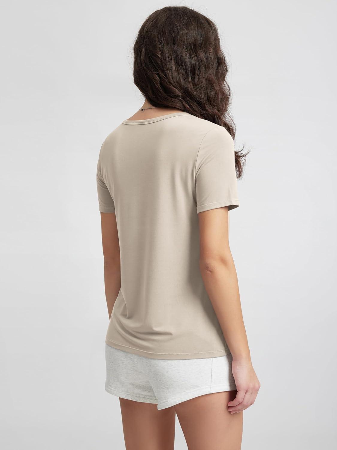 ODODOS Women’s Short Sleeve T-Shirts with Pocket – Ultra Soft Relaxed Tee Casual Lounge Yoga Tops(Nutria)