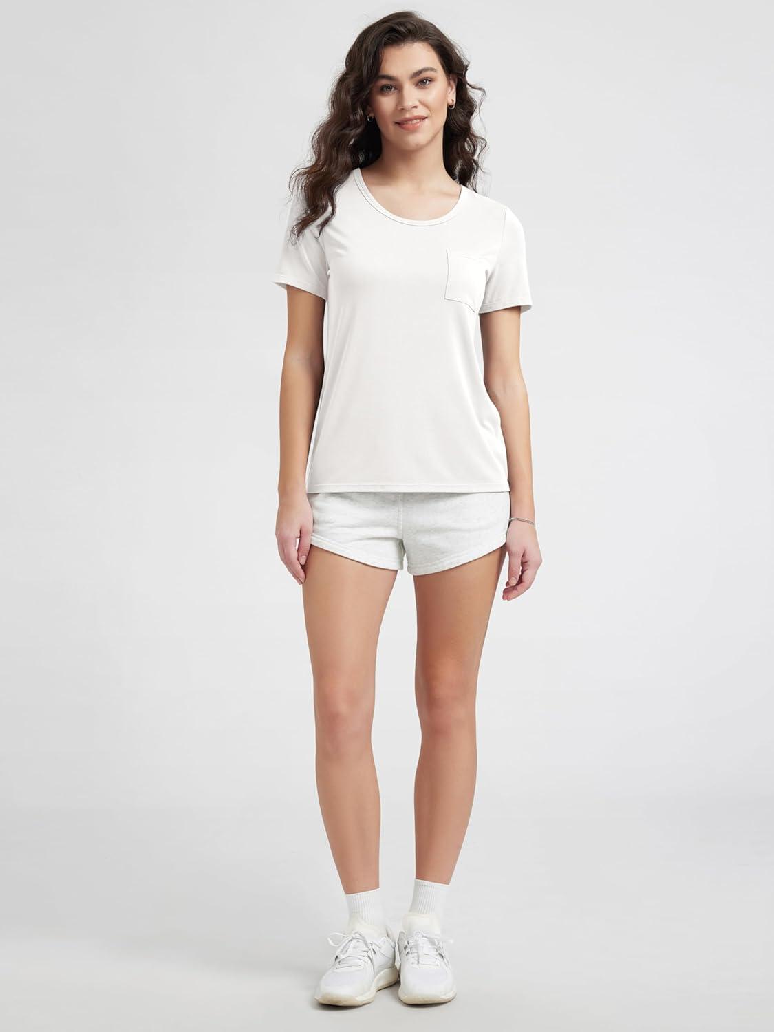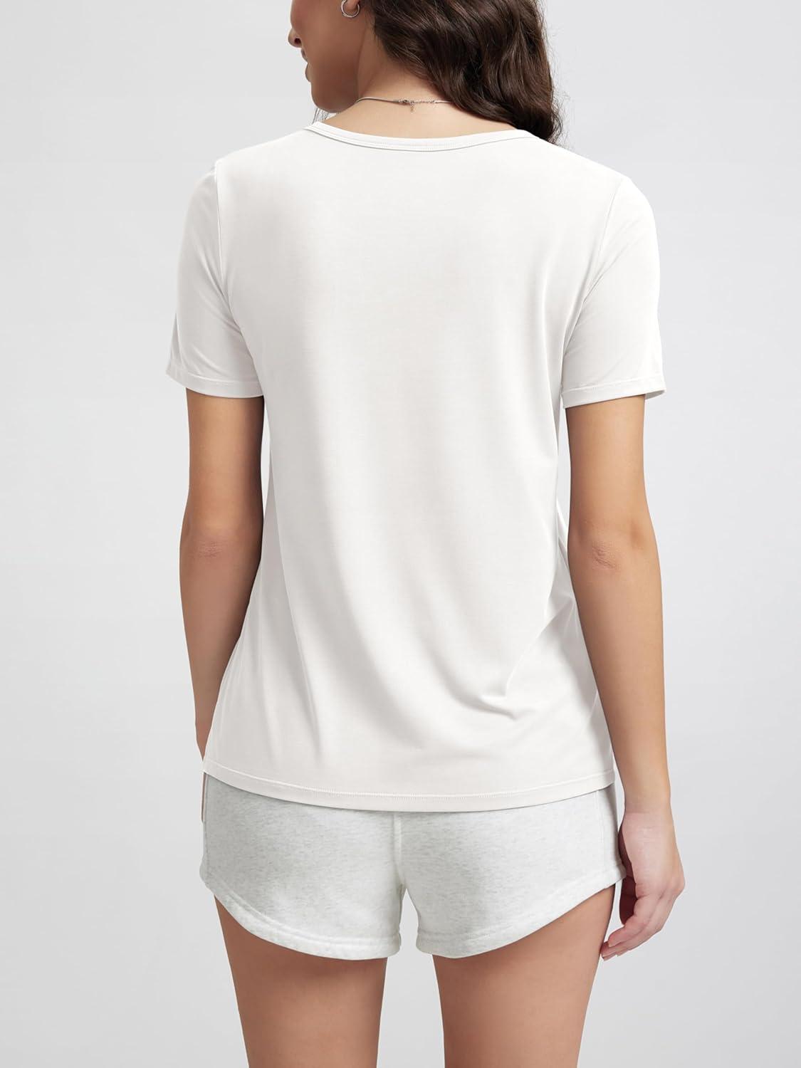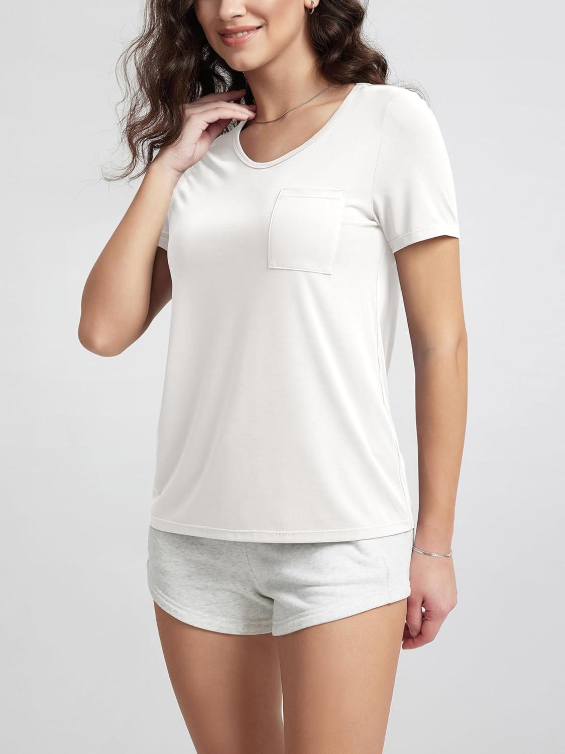 ODODOS Women’s Short Sleeve T-Shirts with Pocket – Ultra Soft Relaxed Tee Casual Lounge Yoga Tops(Milk White)