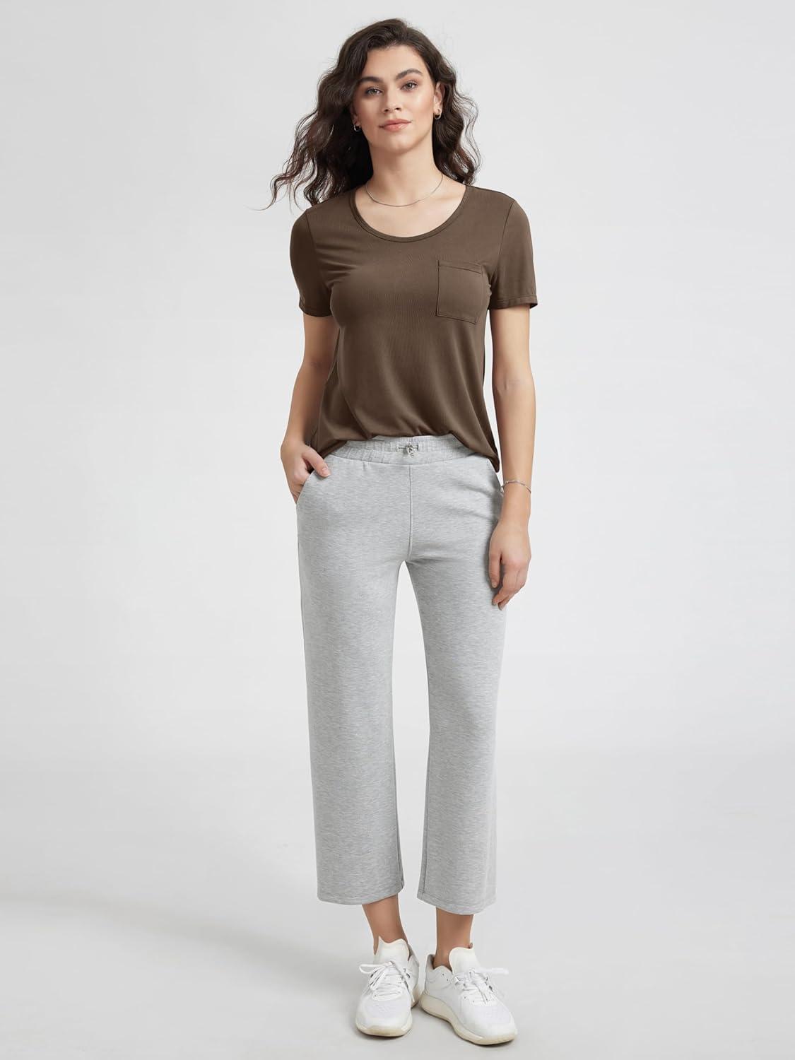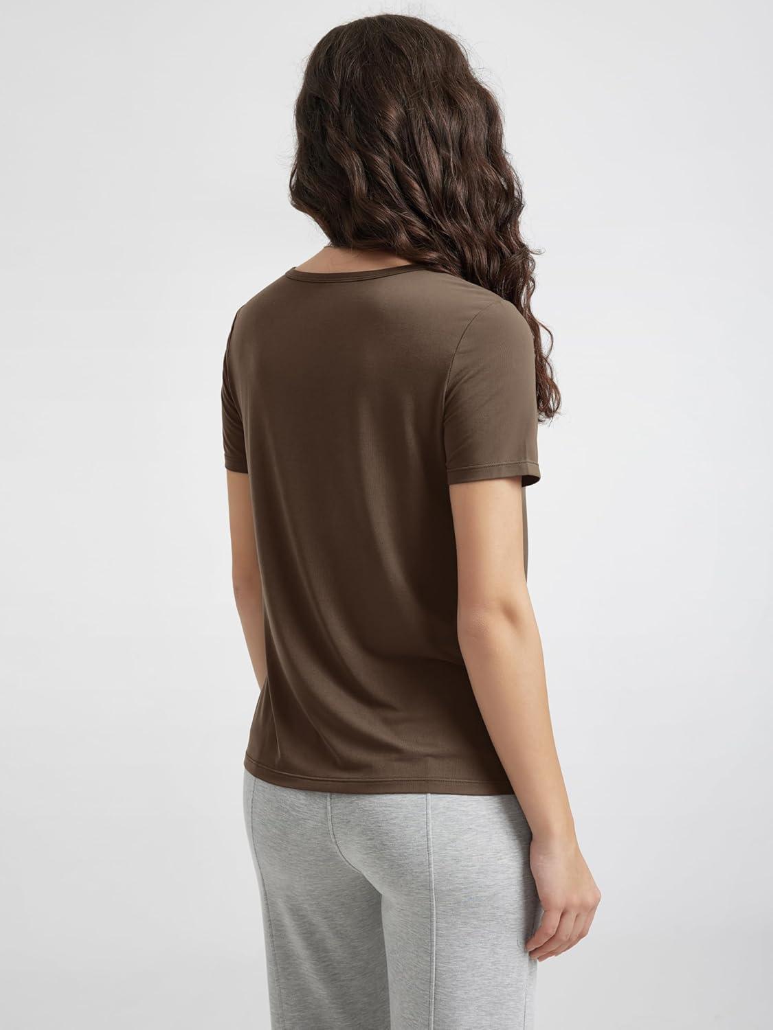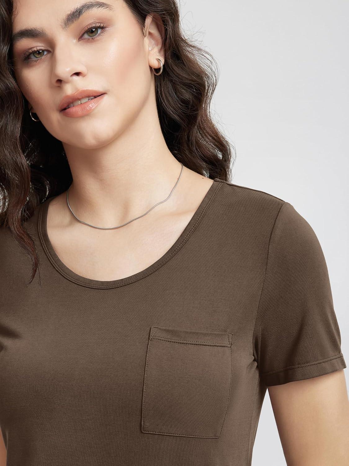 ODODOS Women’s Short Sleeve T-Shirts with Pocket – Ultra Soft Relaxed Tee Casual Lounge Yoga Tops(Nutria)