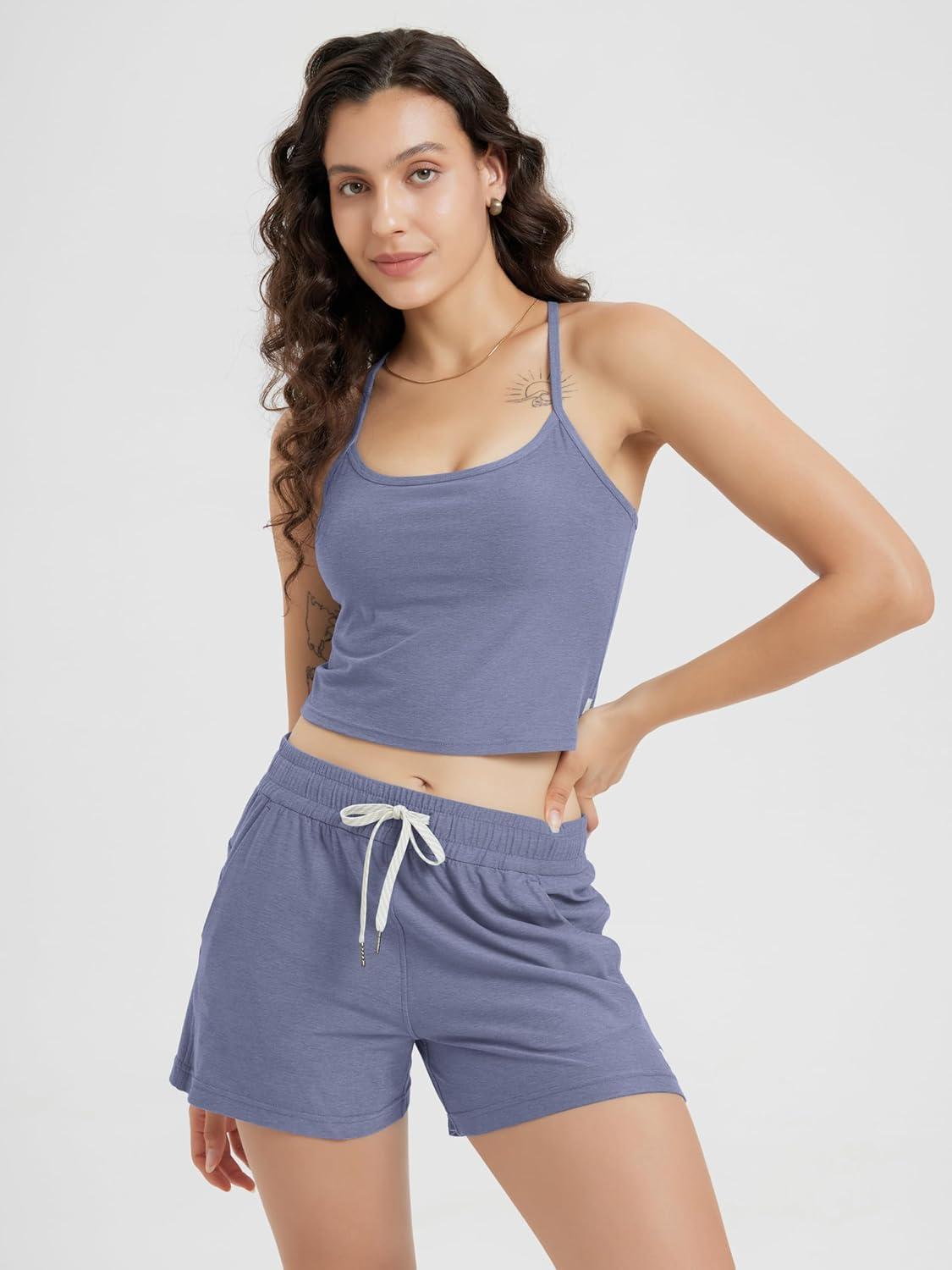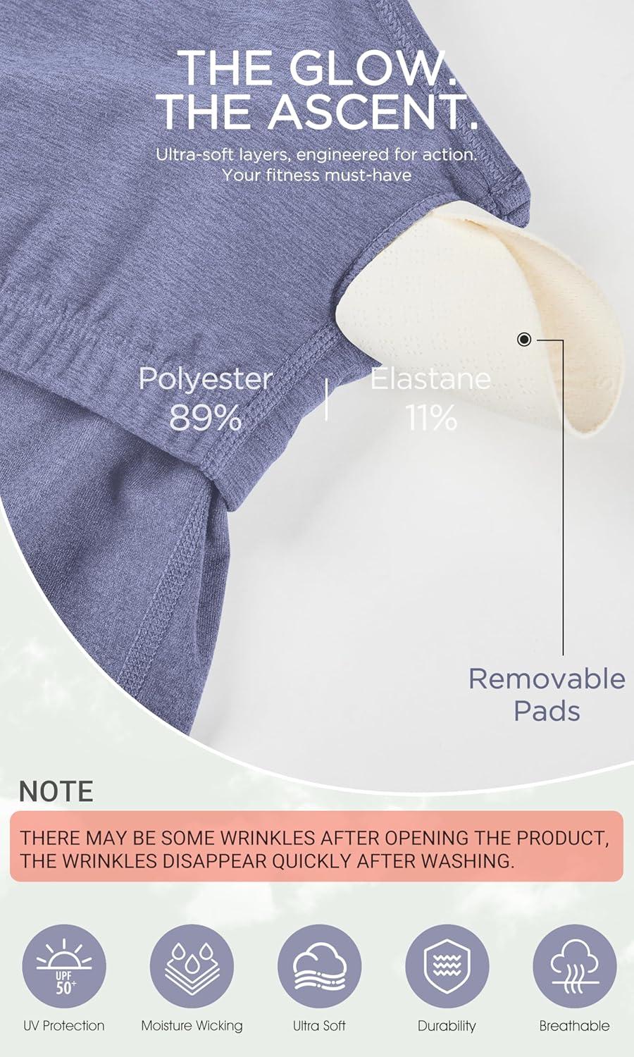 ODODOS Women’s Slim Racerback Cropped Tank – Stratum Tech Sports Bra, Ultra Soft UPF 50+ Cami Top with Built-in Bra(Cosmic Heather)