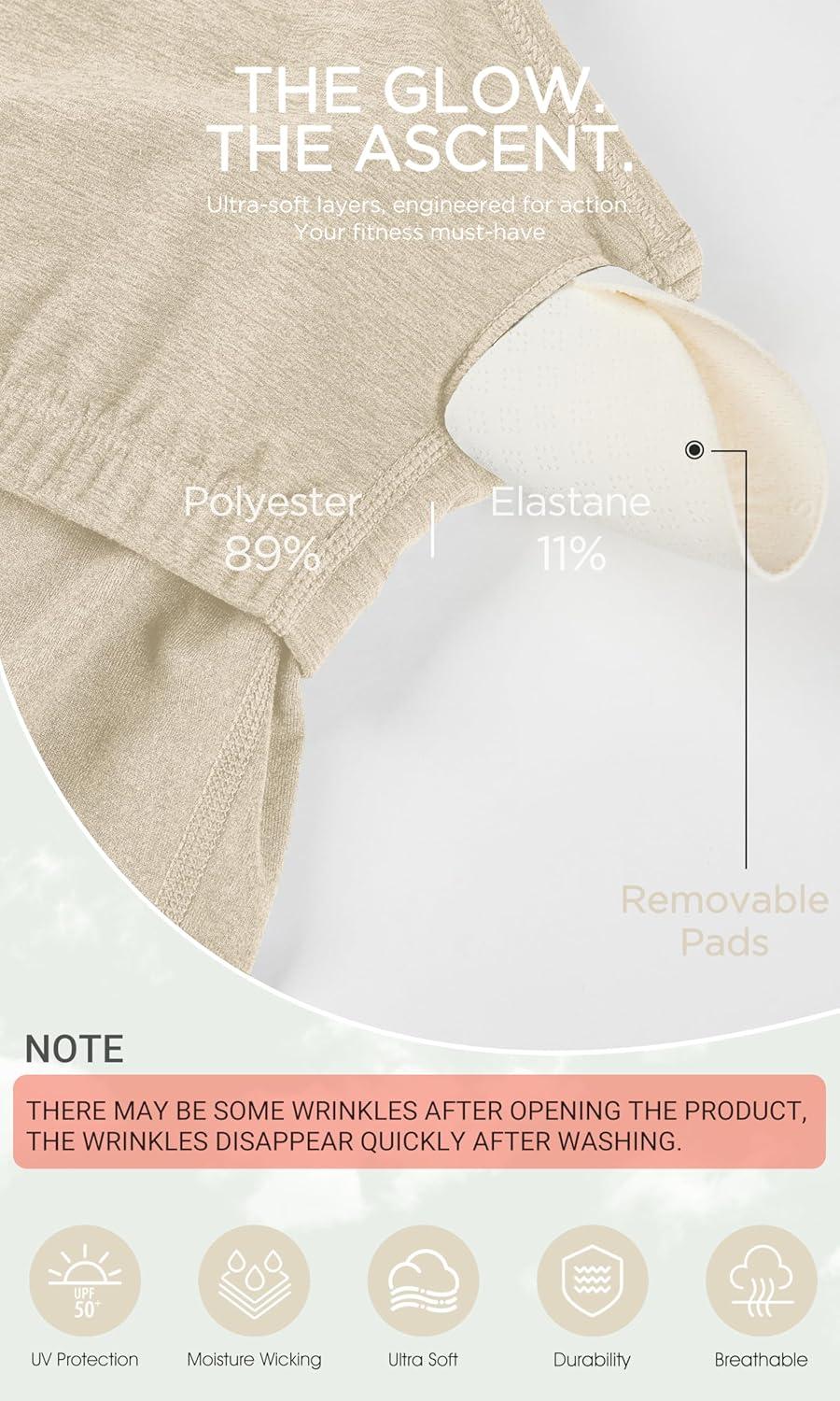 ODODOS Women’s Slim Racerback Cropped Tank – Stratum Tech Sports Bra, Ultra Soft UPF 50+ Cami Top with Built-in Bra(Khaki Heather)