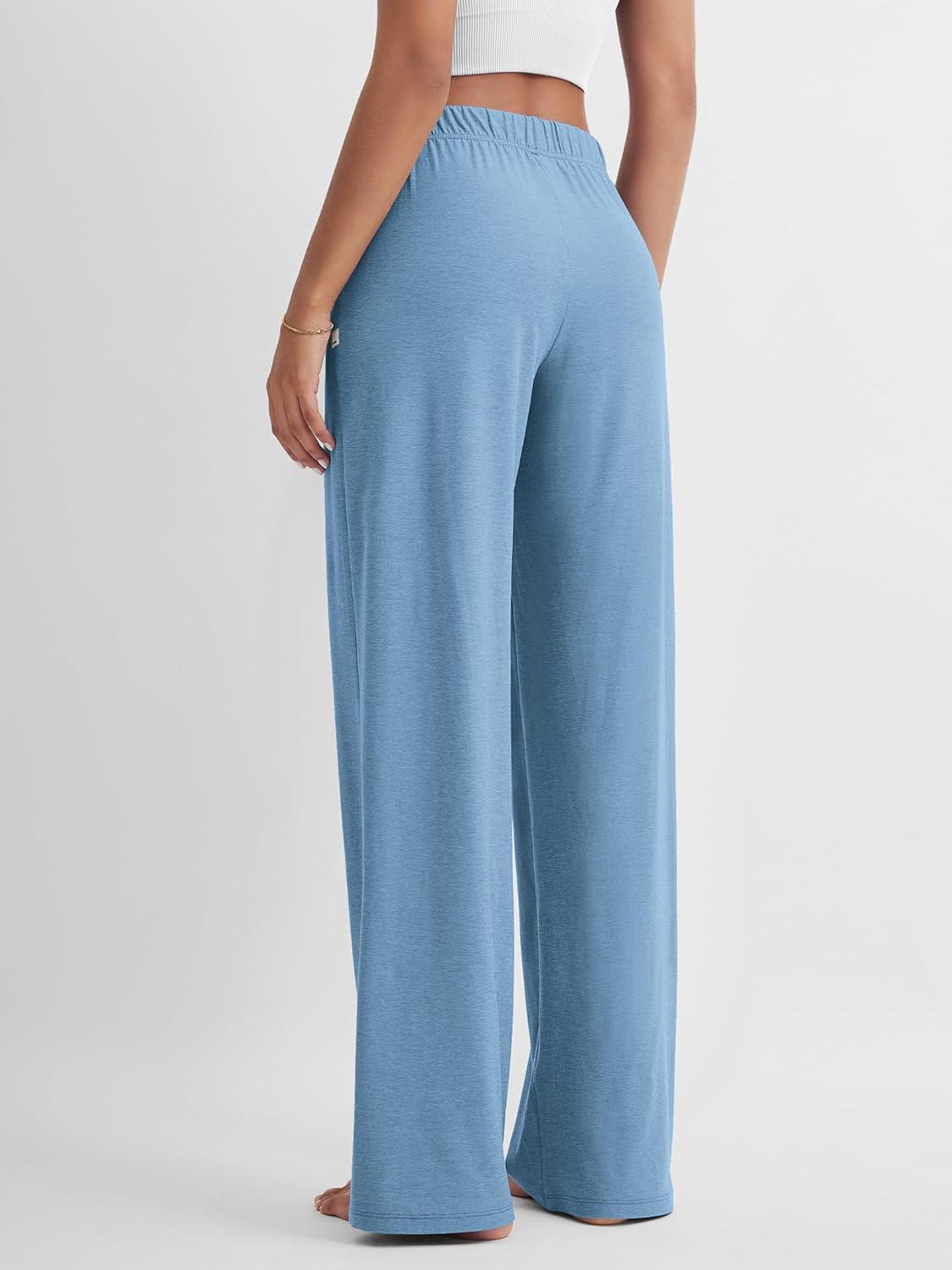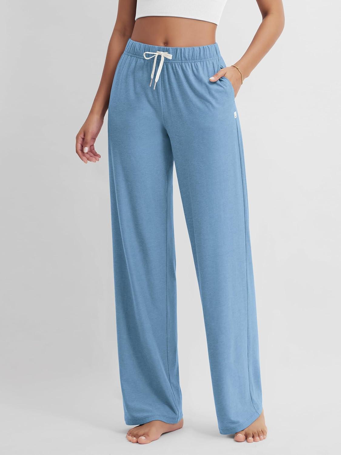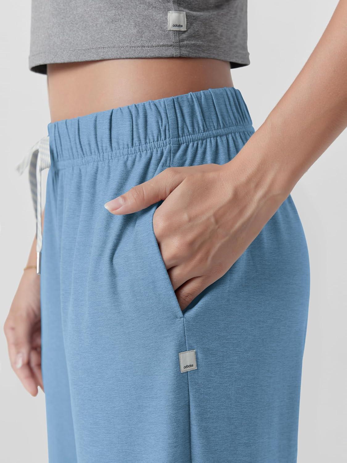 ODODOS Women’s Straight Leg Pants Ultra Soft Stratum Tech Relaxed Casual Pajama Lounge Pants with Pockets-29/31″ Inseam(Washed Denim Heather)