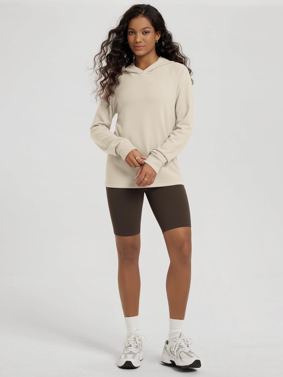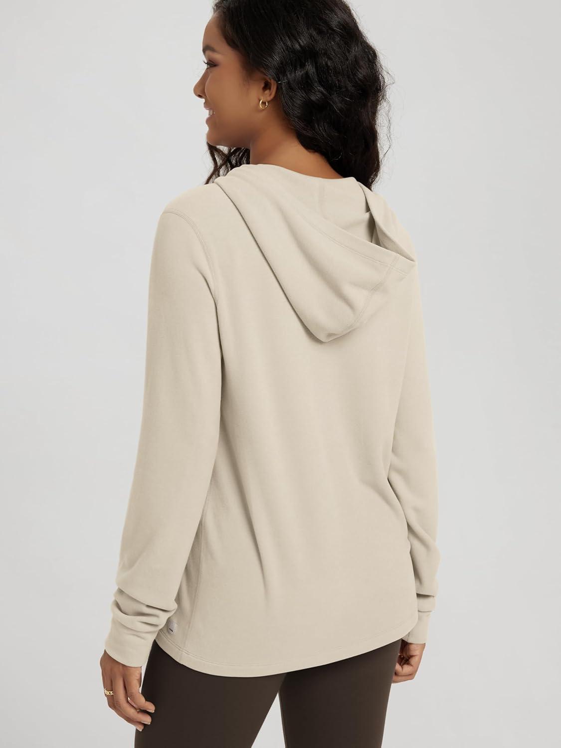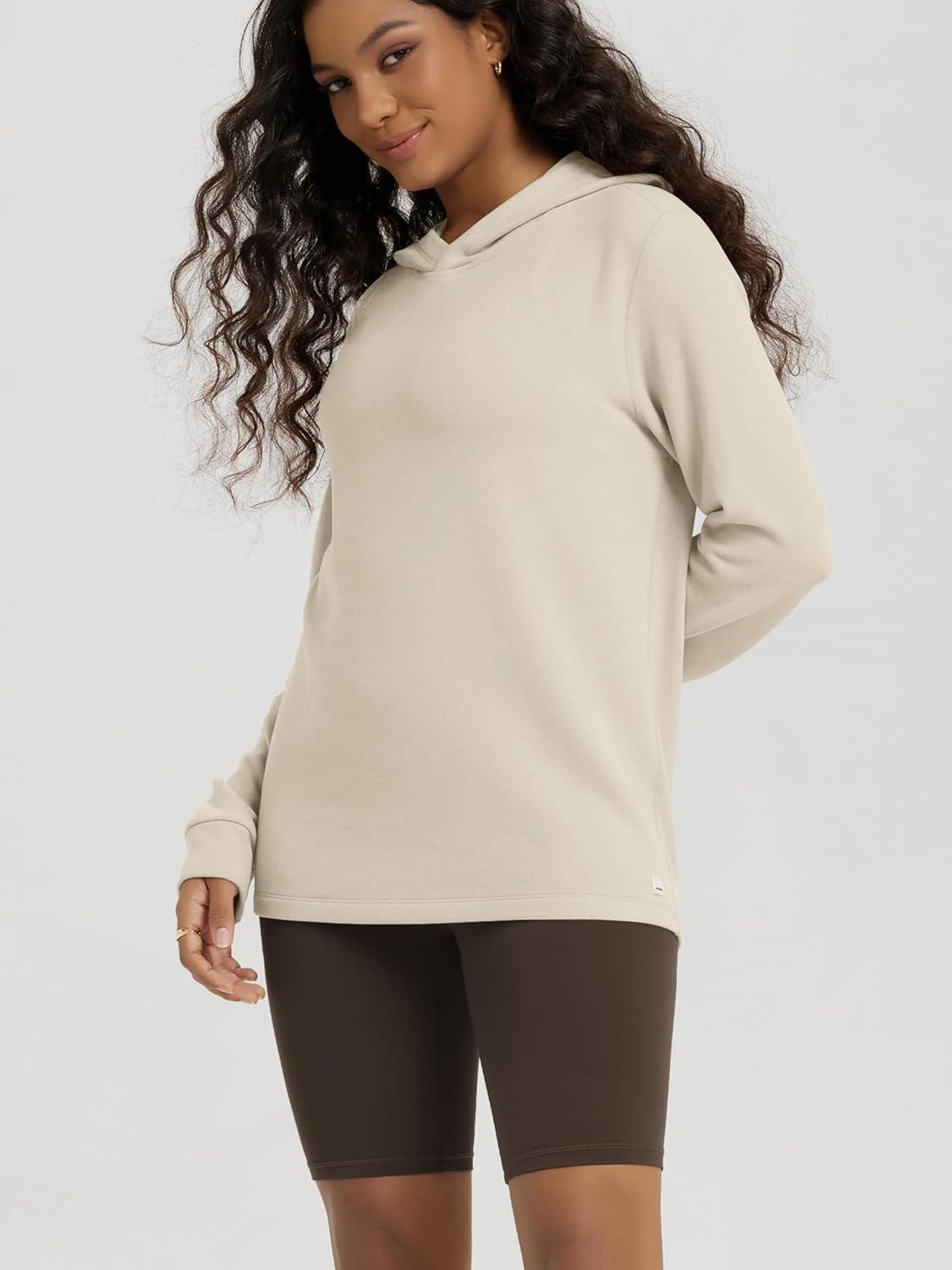 ODODOS Women’s Stretch Fleece Hoodies– Ultra-Soft Cozy Warm Essential Pullover Long Sleeve Top Hooded Sweatshirts(Oatmeal)