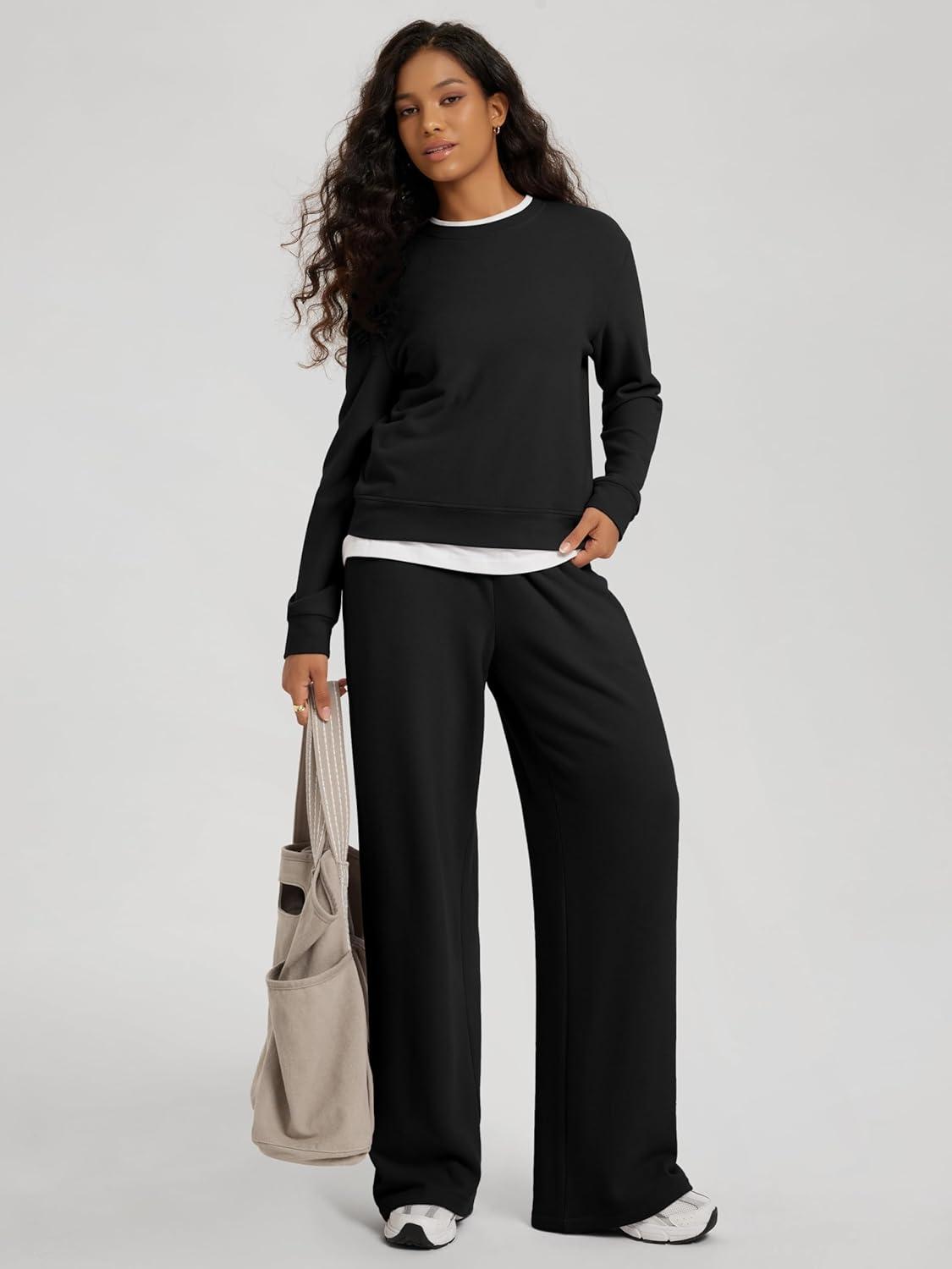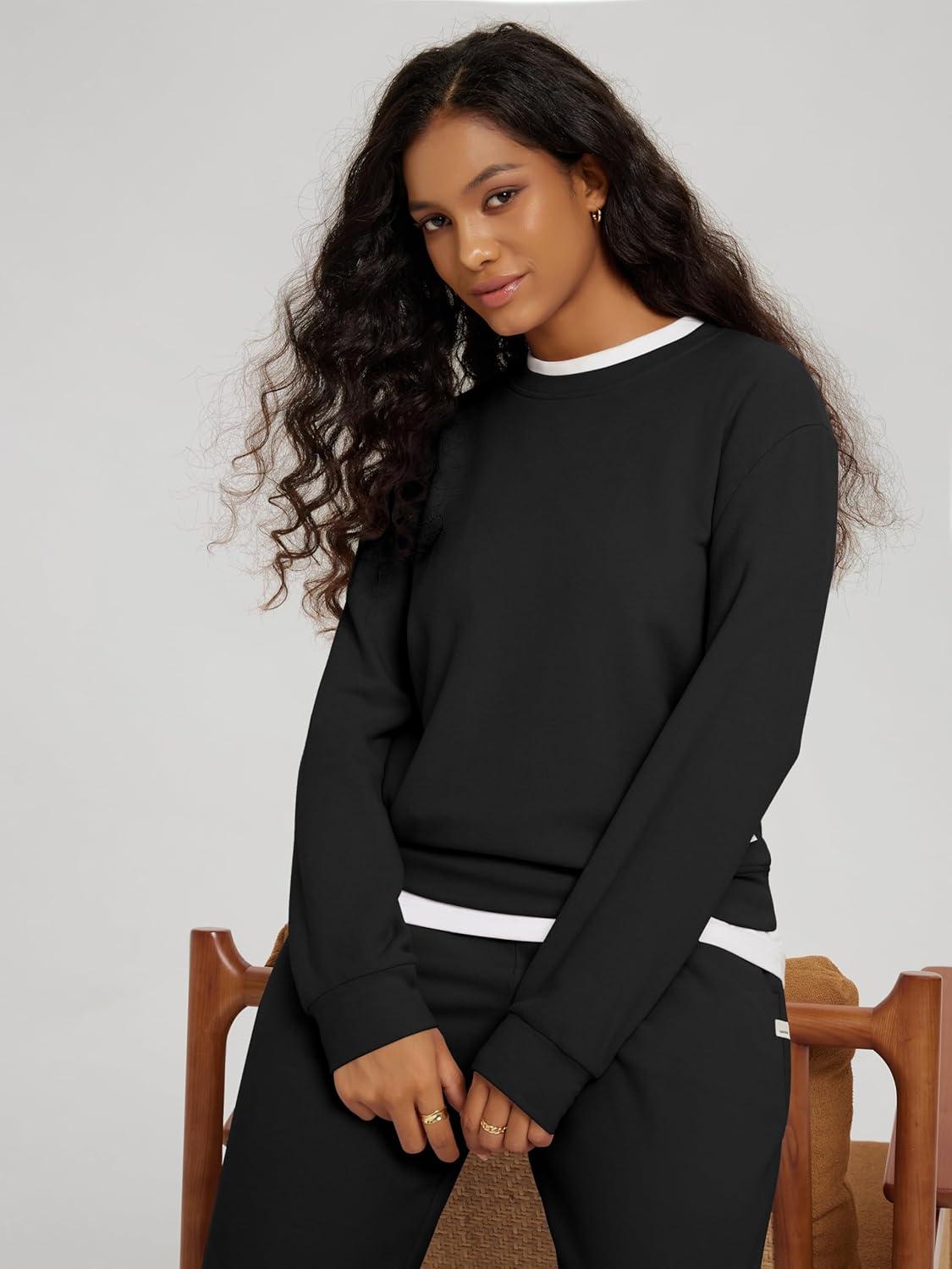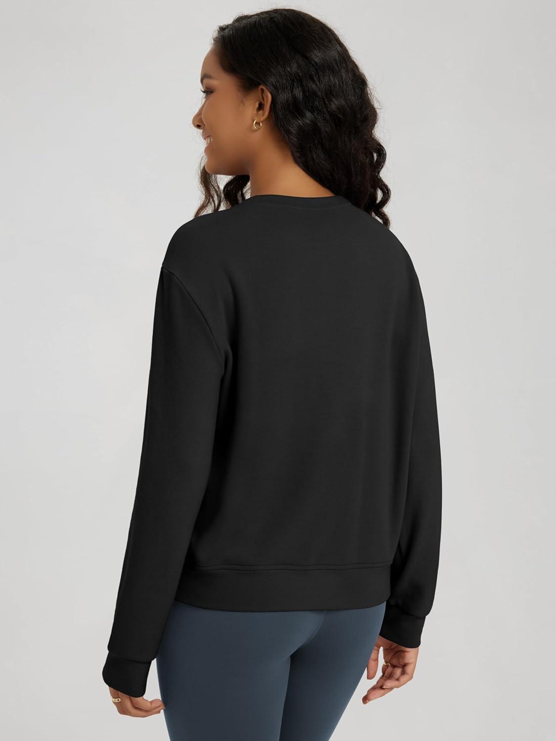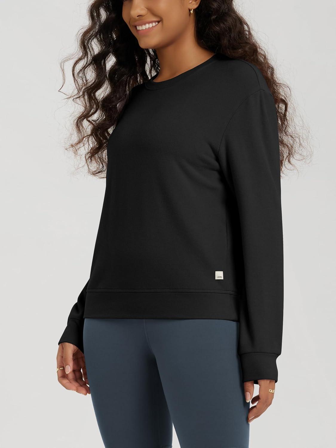 ODODOS Women’s Stretch Fleece Long Sleeve Sweatshirts – Ultra-Soft Cozy Warm Crewneck Pullover Tops(Black)