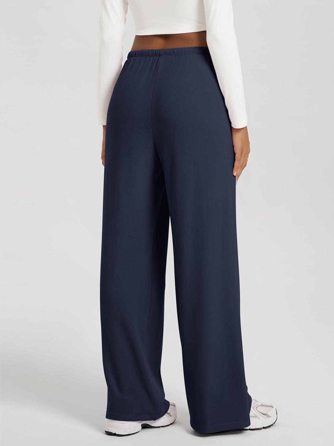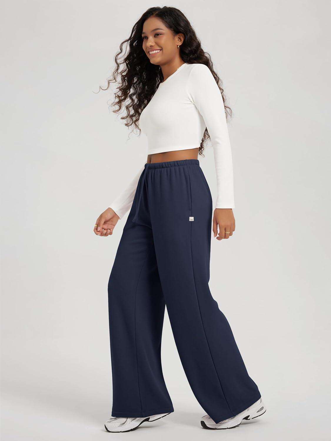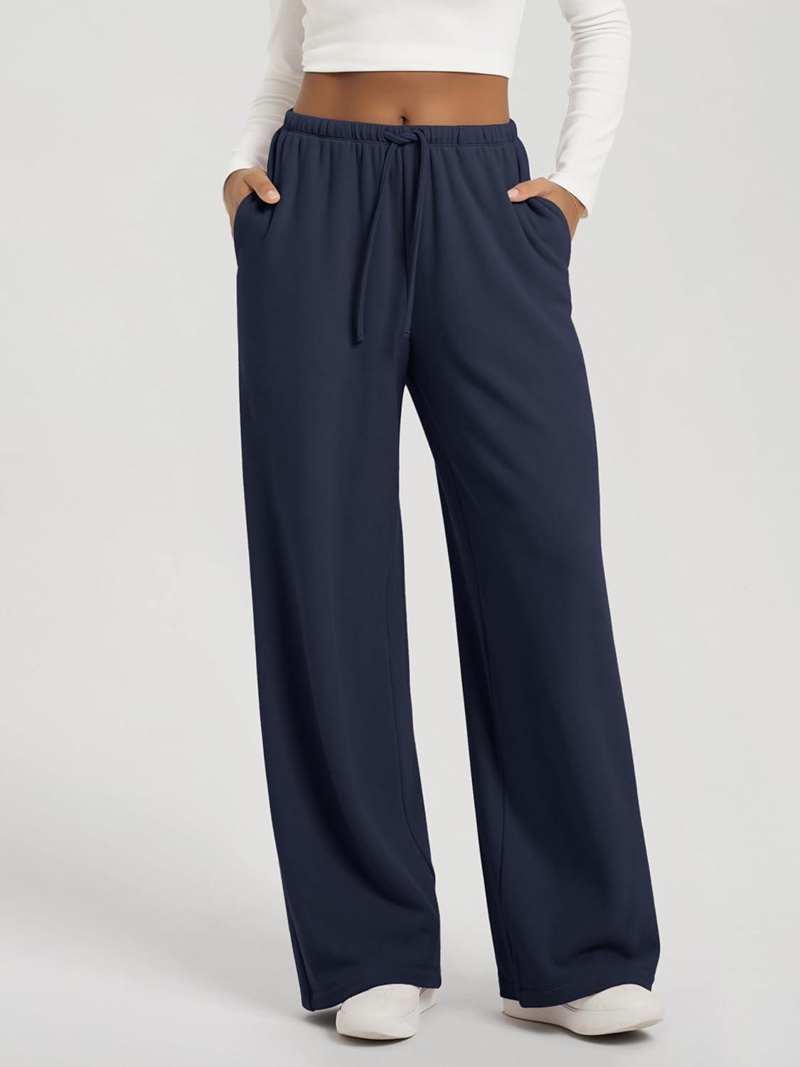 ODODOS Women’s Stretch Fleece Wide Leg Sweatpants – Ultra-Soft Cozy Warm High-Rise Relaxed Lounge Pants with Pockets – 29″(Navy)