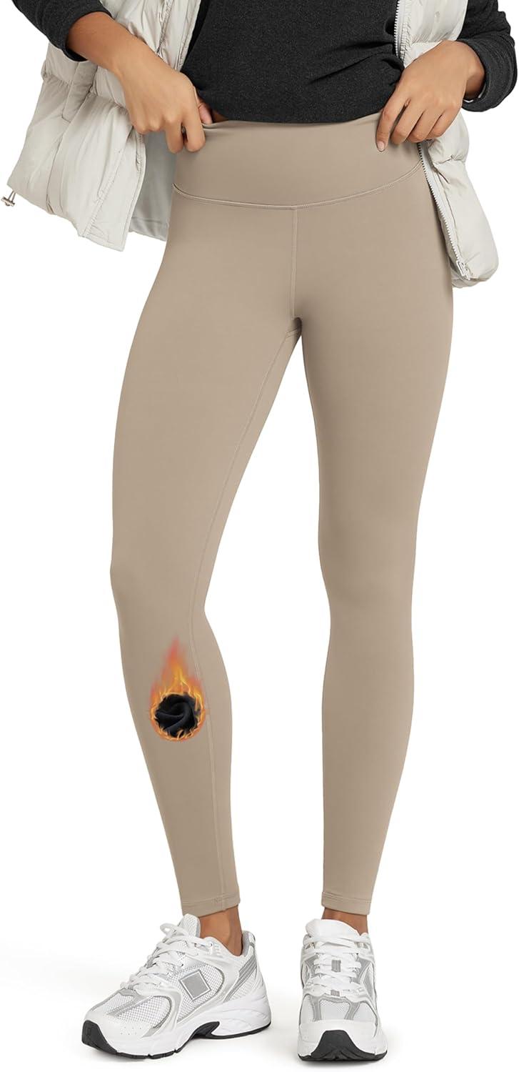 ODODOS Women’s Thermal Bonded Fleece Lined Leggings – Thick Warm Winter High Waisted Yoga Pants with Back Pocket – 25″ / 28″(Dark Beige)