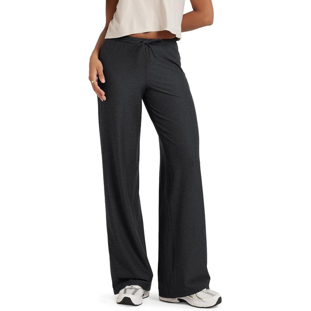 ODODOS Women’s Wide Leg Pants – Ultra Soft odSTRATUM Tech Adjustable Mid-Rise Casual Pajama Lounge Pants(Black Heather)