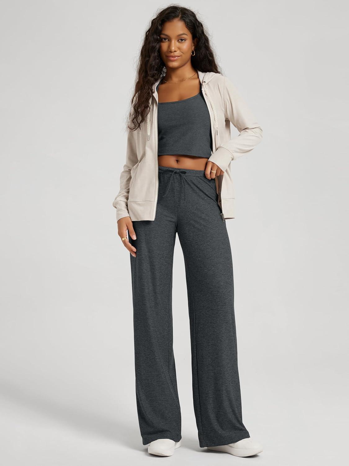 ODODOS Women’s Wide Leg Pants – Ultra Soft Stratum Tech Adjustable Mid-Rise Casual Pajama Lounge Pants(Charcoal Heather)