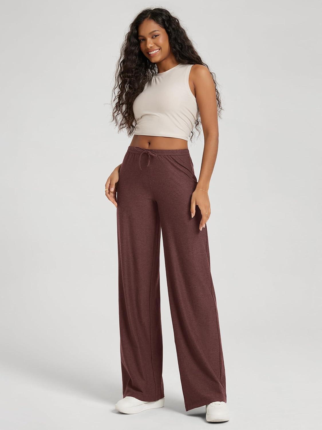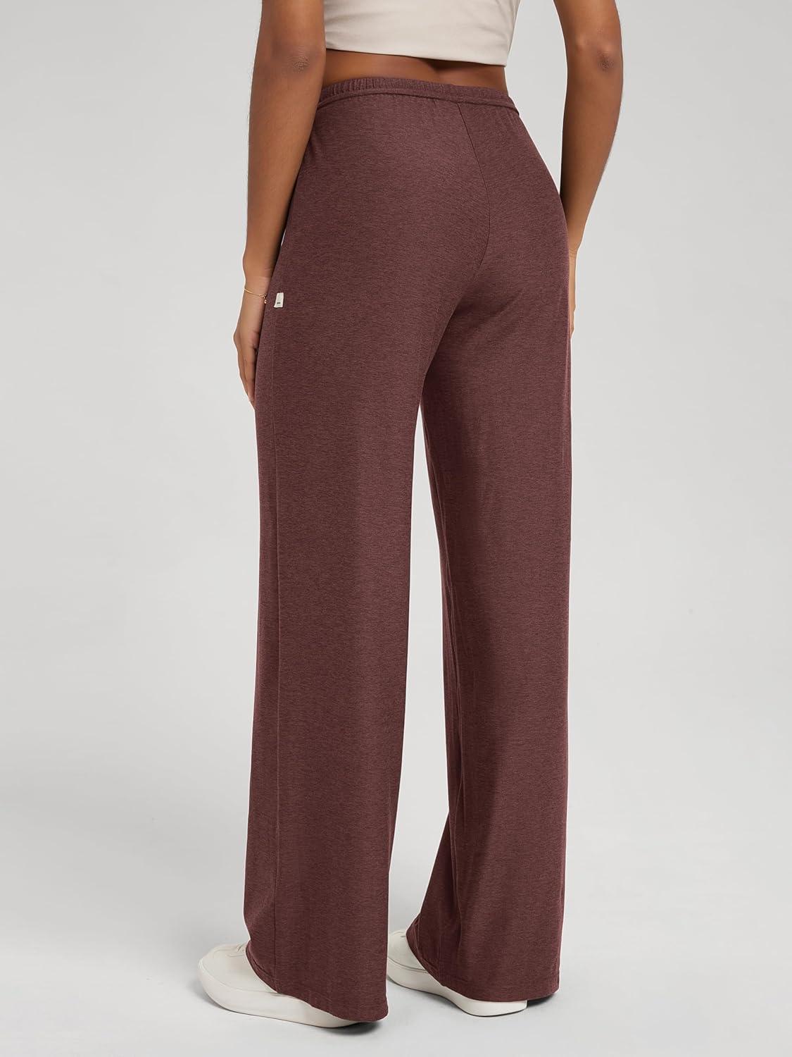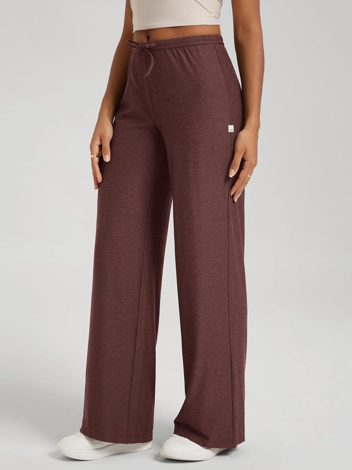 ODODOS Women’s Wide Leg Pants – Ultra Soft Stratum Tech Adjustable Mid-Rise Casual Pajama Lounge Pants(Java Heather)